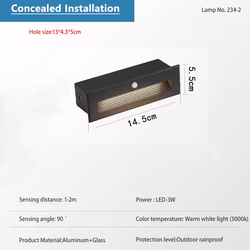 Outdoor LED Wall Foot Light Square Side Mounted Staircase Corner Step Black Exterior Wall Light Courtyard Step Foot Aluminum Floor Light