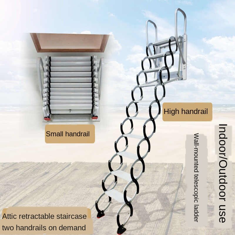 Outdoor telescopic ladder Outdoor Retractable Staircase Attic Household Foldable and Hoisting Stretch Indoor Invisible Duplex Outdoor Lifting Wall Hanging Ladder Household Multifunctional Folding Mobile Small Ladder
