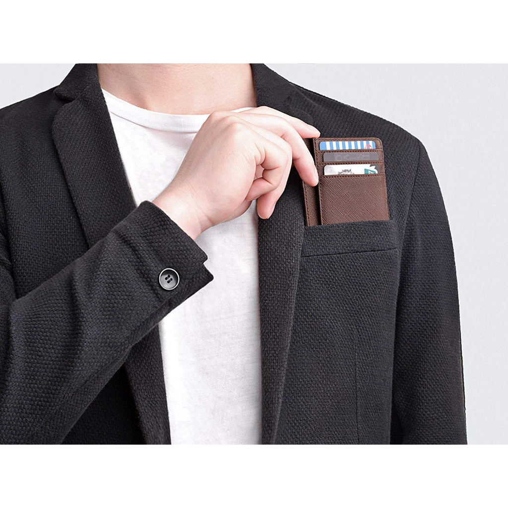P&D Slim Credit Card Holder Leather Minimalist Wallet Front Pocket Wallets RFID Blocking for Men Women