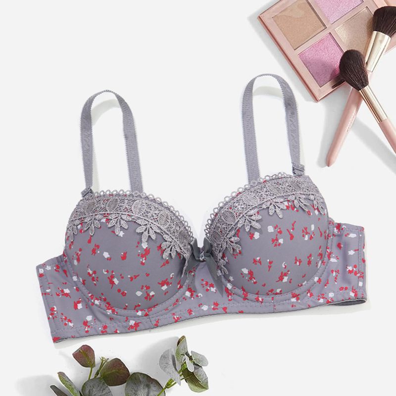 PARIFAIRY Little Floral Print Brassiere Foam Padded Bra Push Up Embroidred Bra with Wire 36B 38B 40B 42B-31322