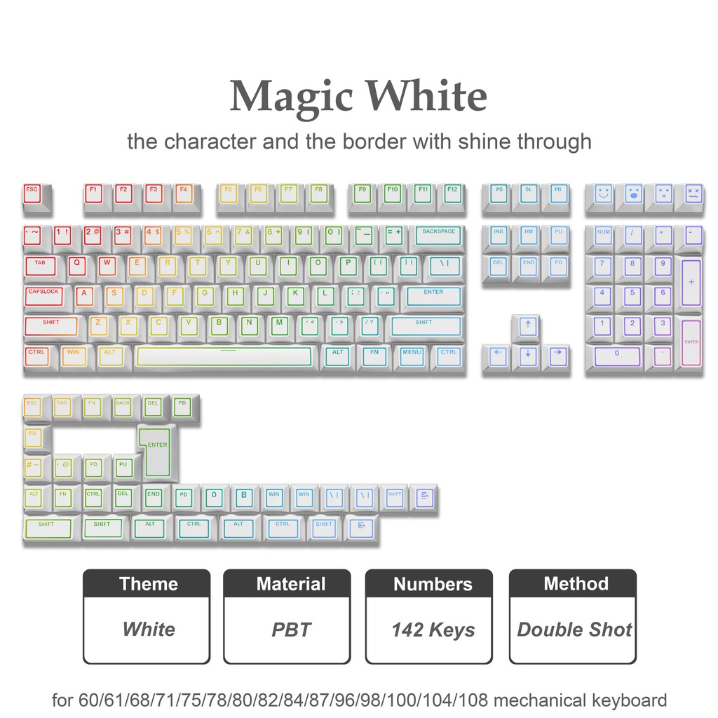 PBT Shine Through Double Shot Keycaps 142 Keys Cherry Profile Backlit Keycaps forMechanical Keyboard