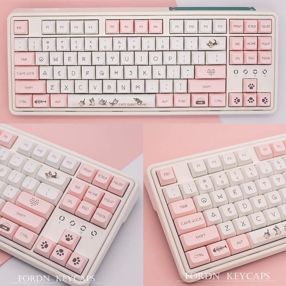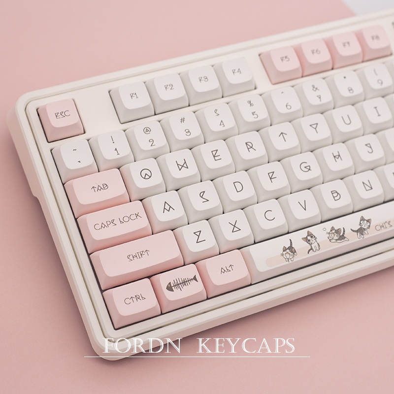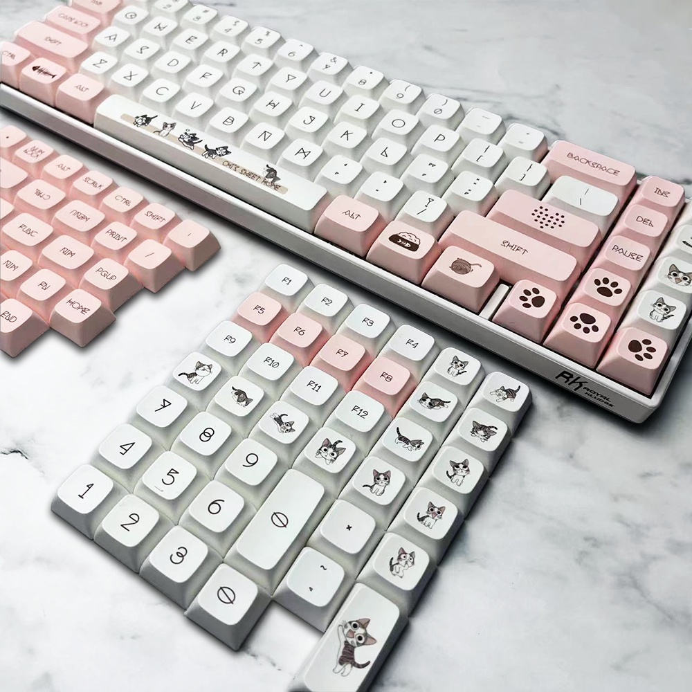 PBT Sublimation Pink Cat Keycaps 137 Key XDA Profile is Suitable For Mechanical Gaming Keyboard Keycaps