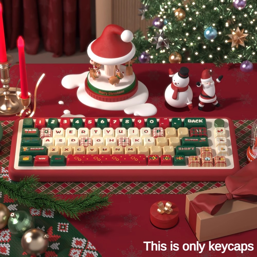 PBT keycaps Christmas Eve Theme cute Gradient Rainbow keycap Cherry/MDA height MOA Round keycaps Dye Sublimation Mechanical Keyboard Cap full set Christmas gift