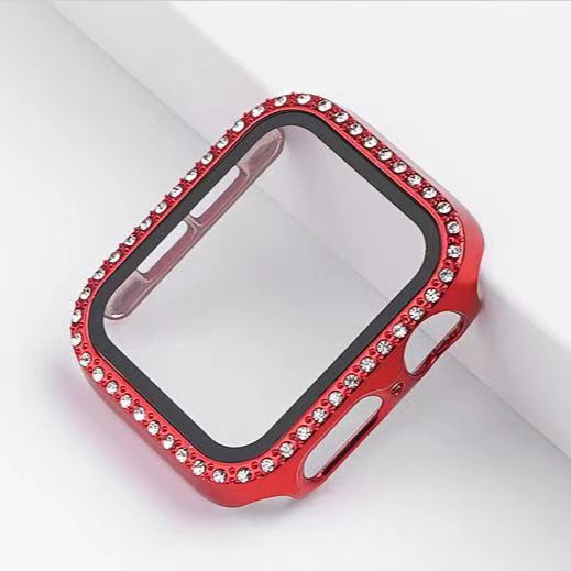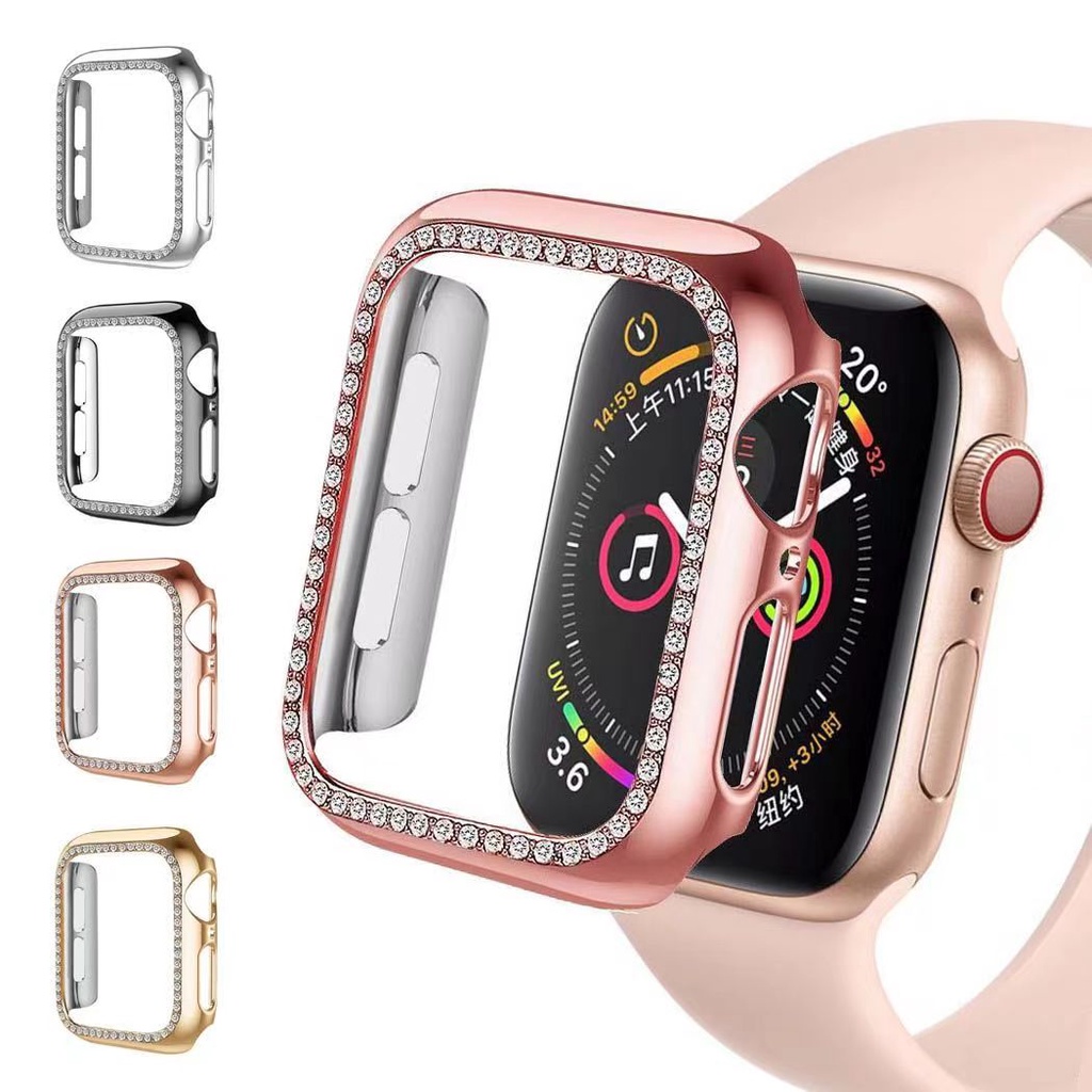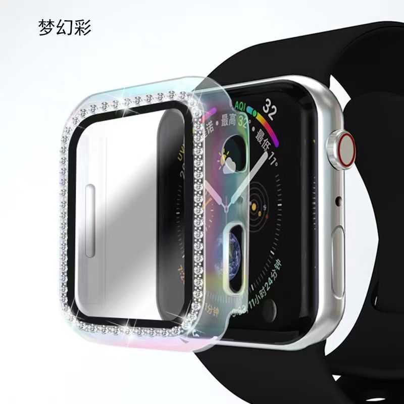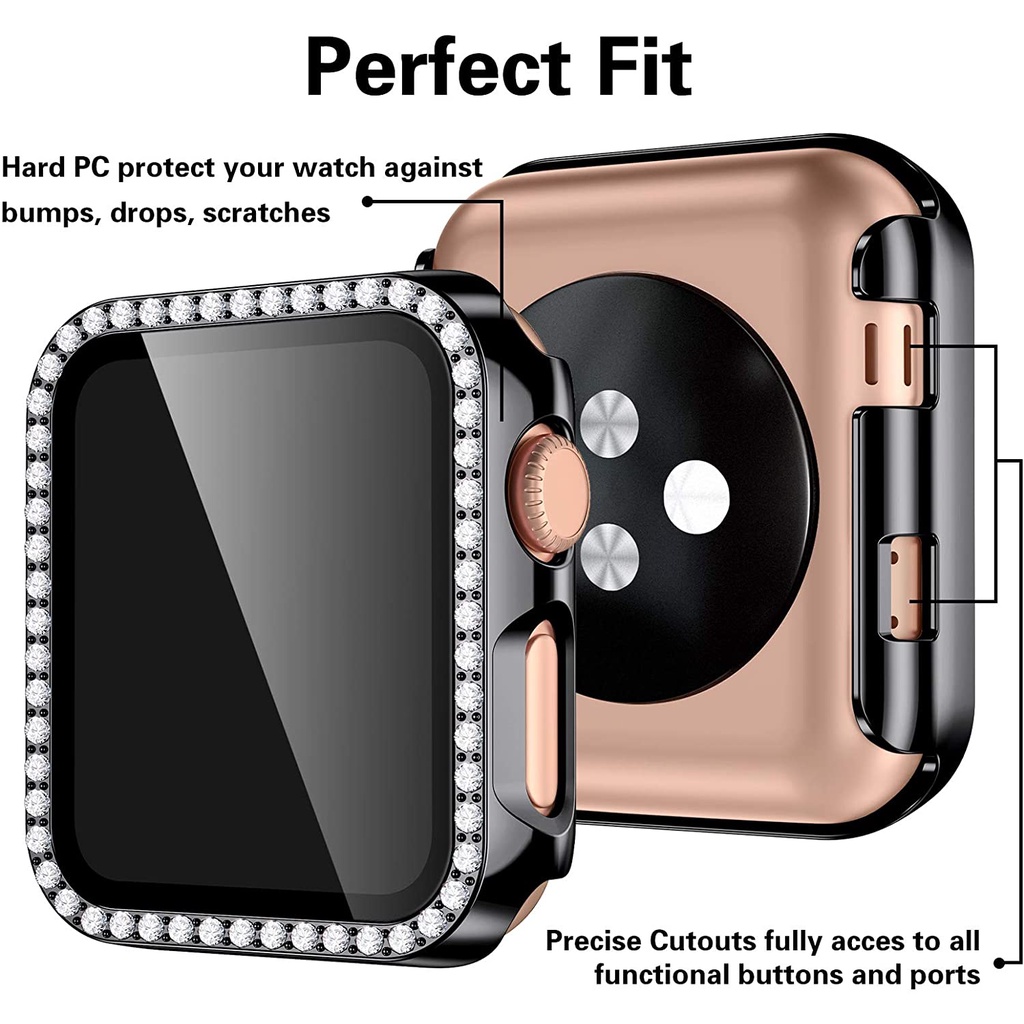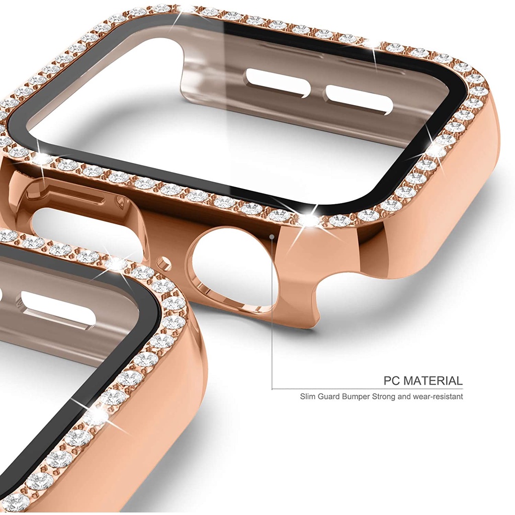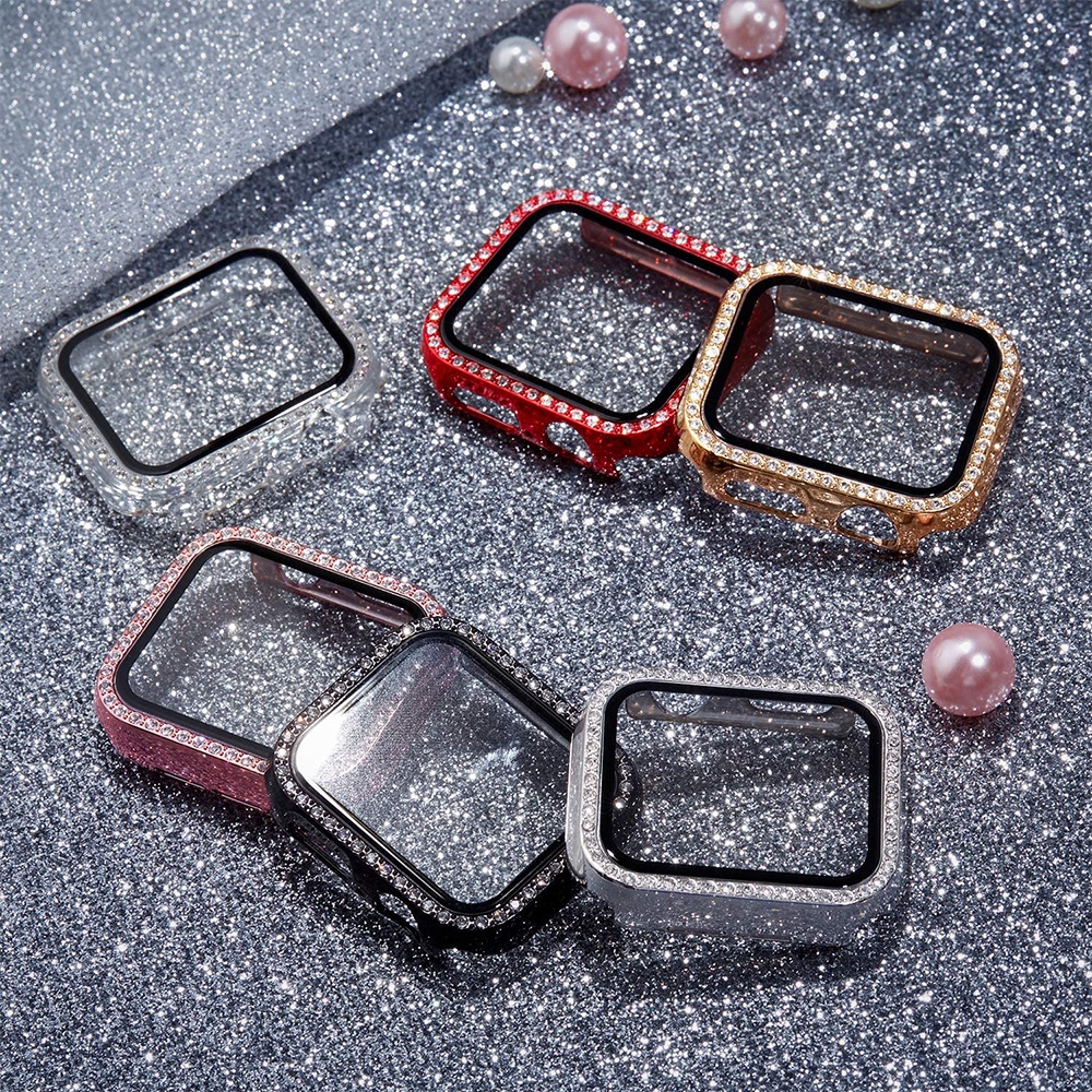 PC+Tempered Glass Case For Apple Watch Case Bling Diamond Cover i watch series 8 SE 7 SE 6 5 4 3 2 case Diamond bumper size 38mm 40mm 41mm 42mm 44mm 45mm