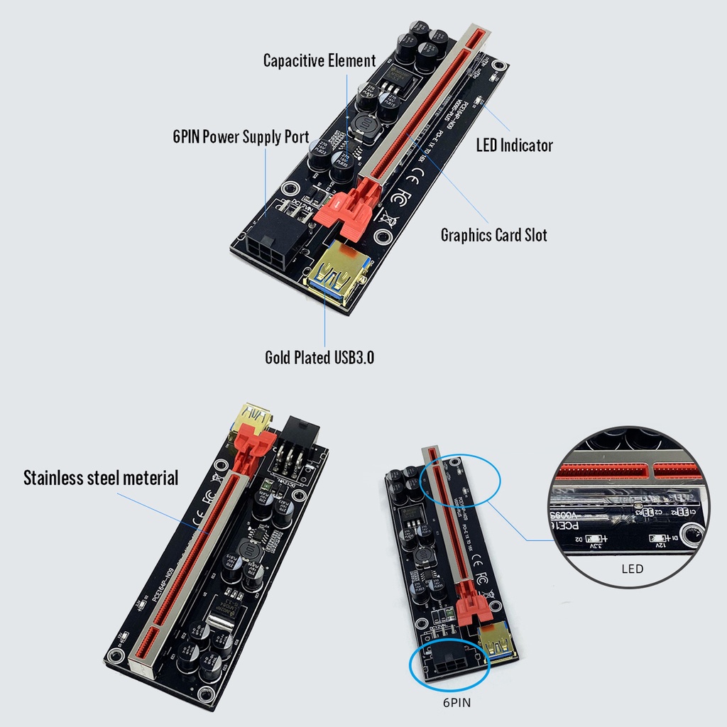 PCI-E Riser Card GPU Extender PCI Express 1X to 16X Extension Graphics Card Adapter USB3.0 Gold Version Mining Rig