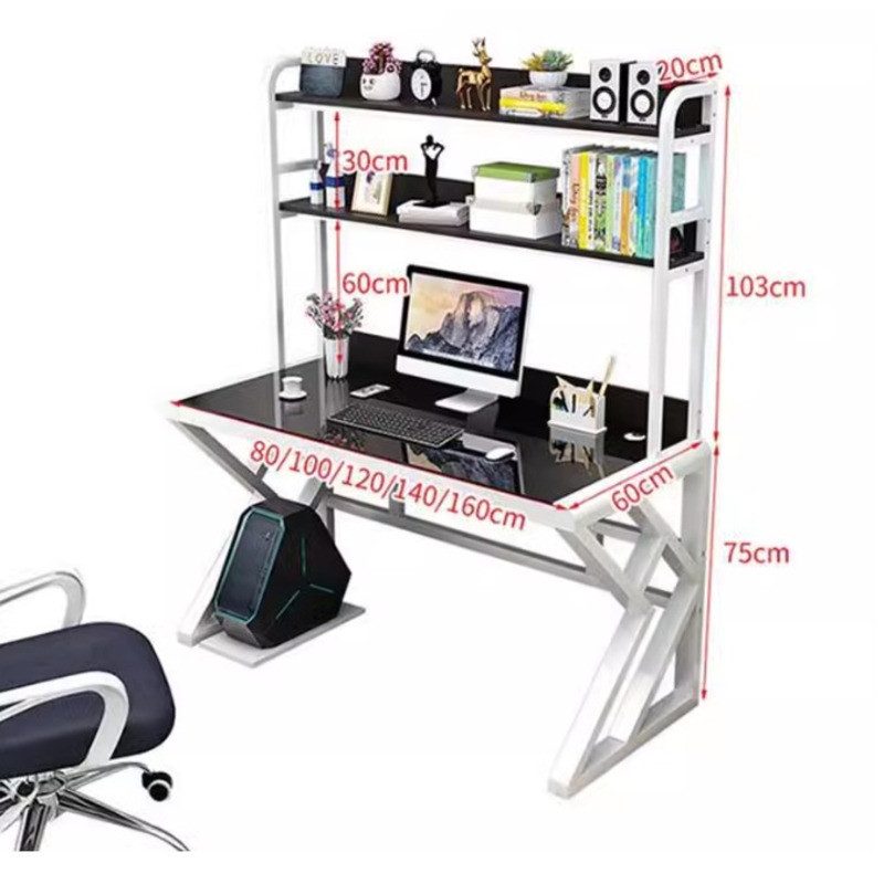 PCL Modern Study Desk Computer Tempered Glass With Boohelf Office Table Combination Home
