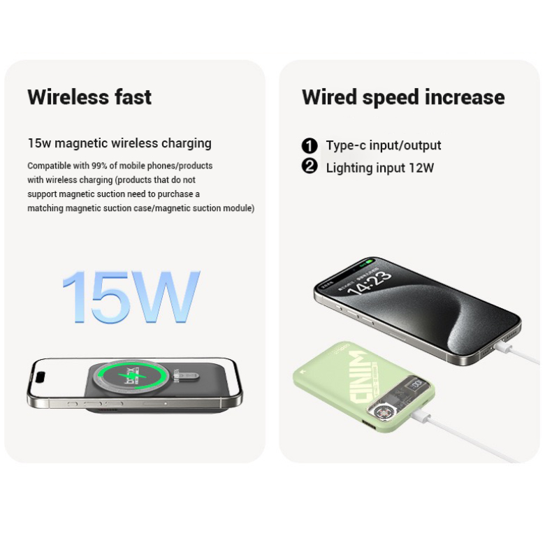 PD 15W 10000mAh Transparent Magnetic Powerbank 2in1 With Turbo Cooling Fast Charging Digital Display Portable Power Bank