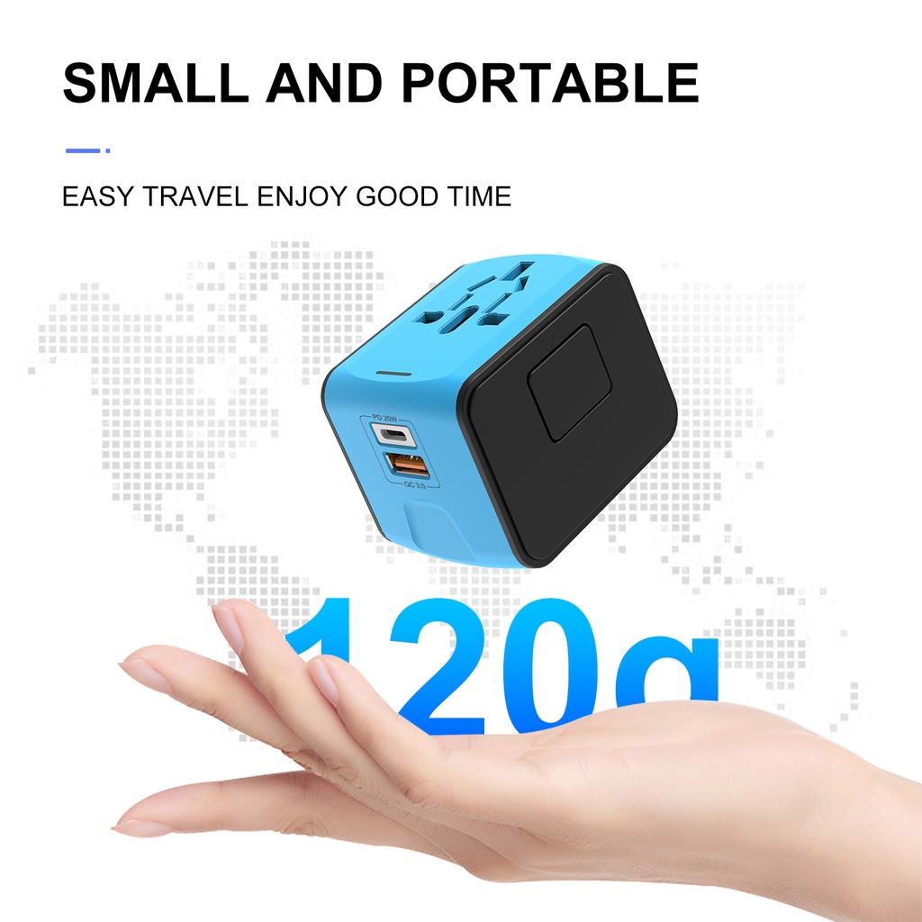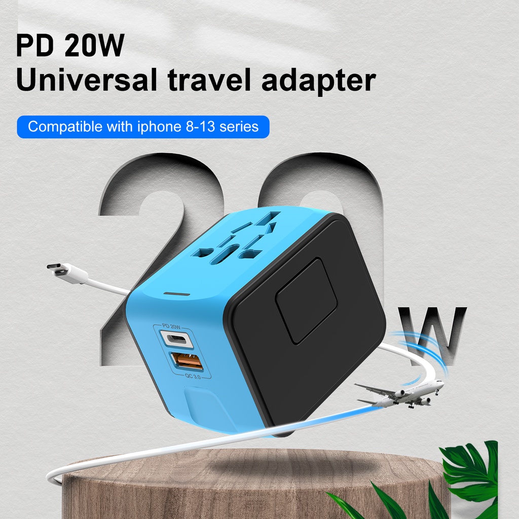 PD 20W Universal Travel Adapter 20W USB-C and 18W USB-A (Black)