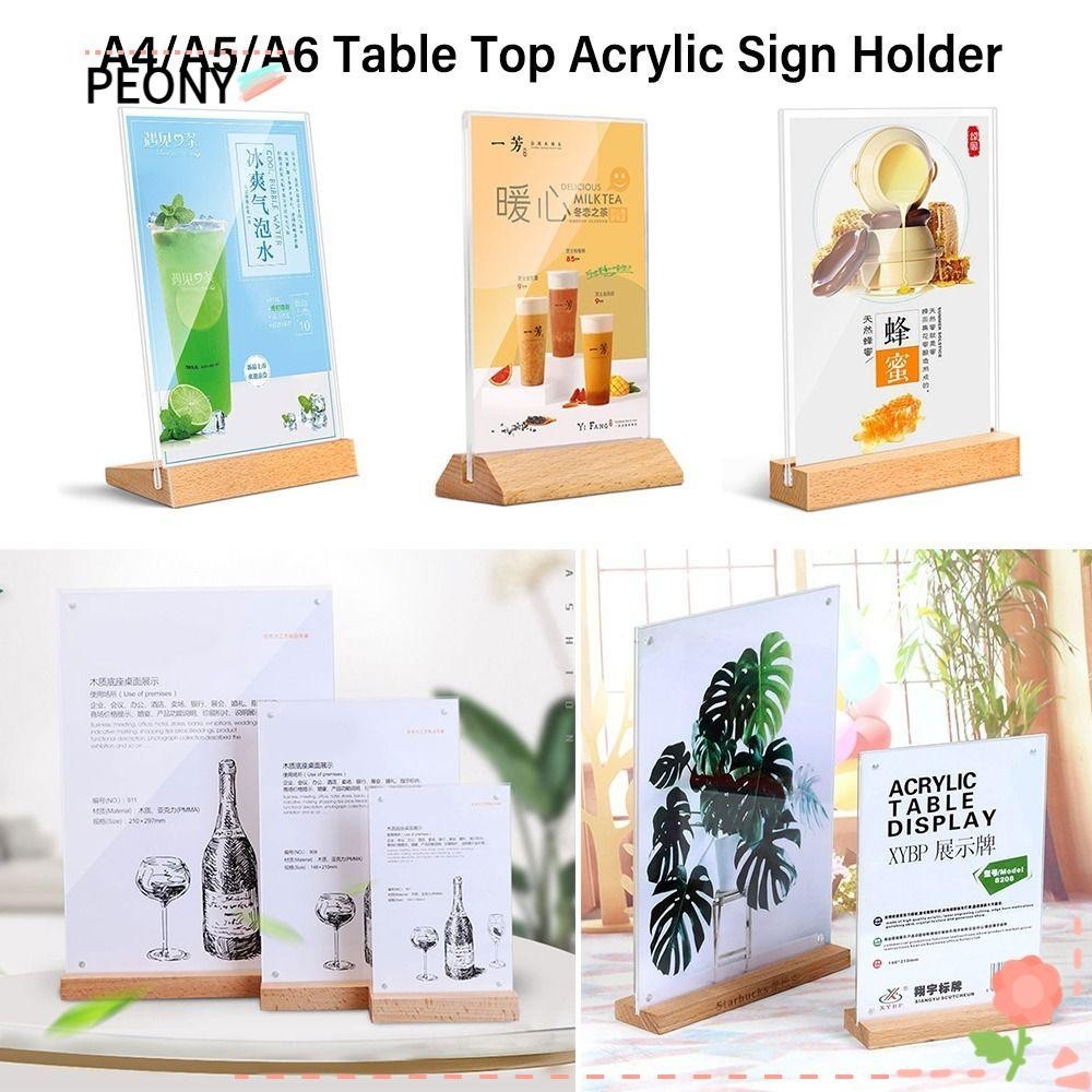 PEONIES Table Top Sign Holder, Acrylic Double Sided Menu Display Stand, High Quality A4/A5/A6 with Wood Base Picture Card Frame Restaurant