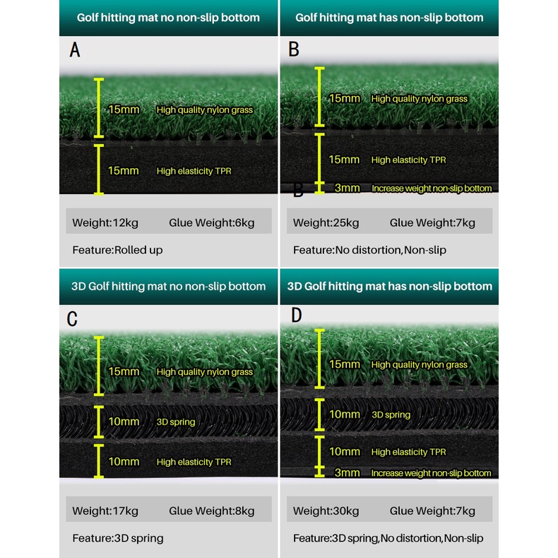 PGM Professional 1.5m golf driving range mat golf swing teaching training hitting mat with 3D spring layer and positioning line DJD007