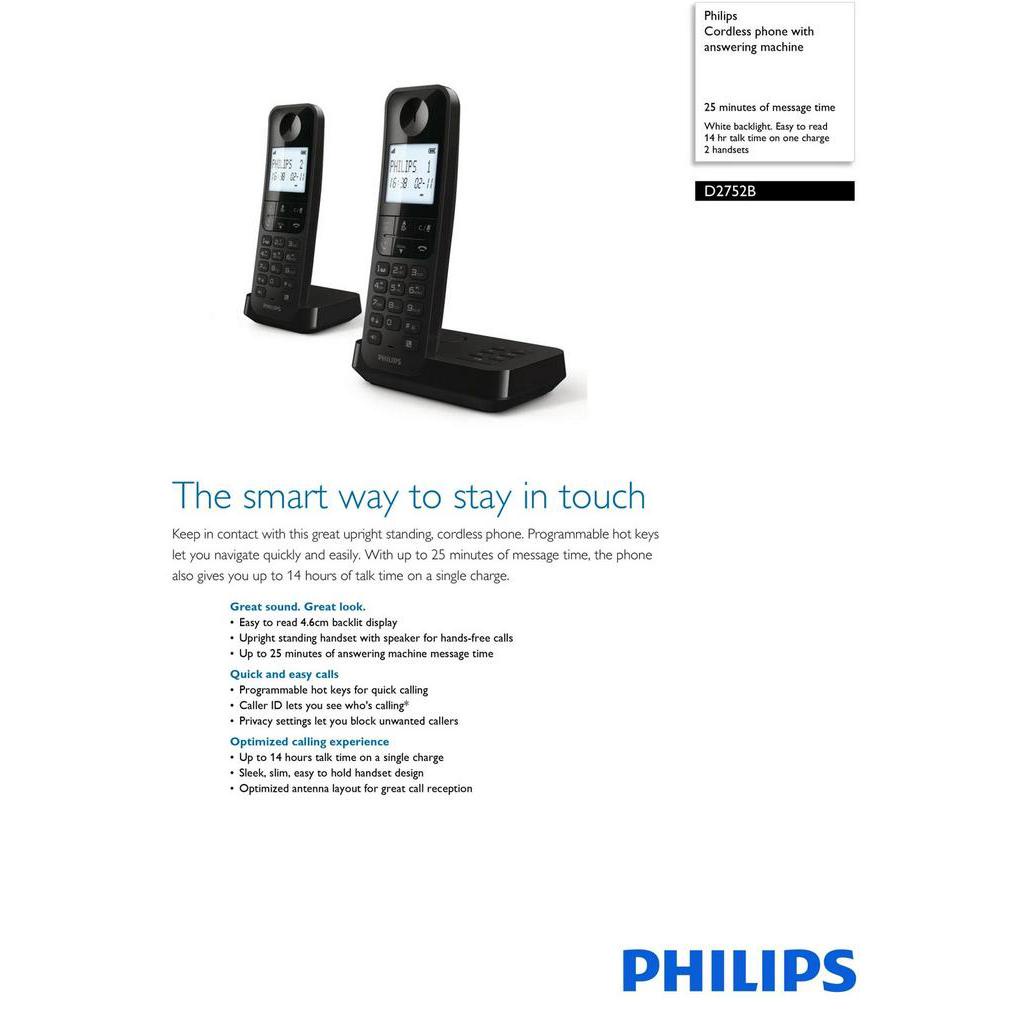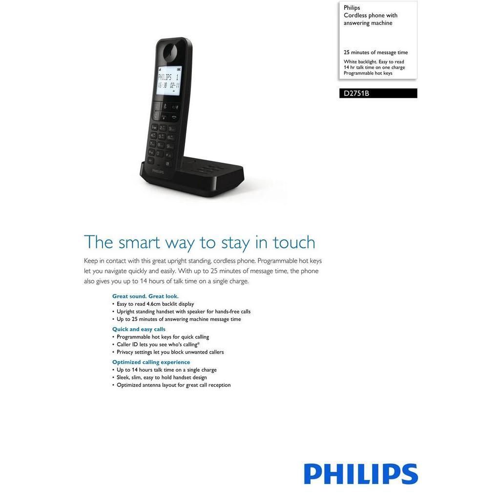 PHILIPS Cordless Phone with Handsfree Speaker Phone Caller ID 50 Phonebook memory With/ Without Answering Machine