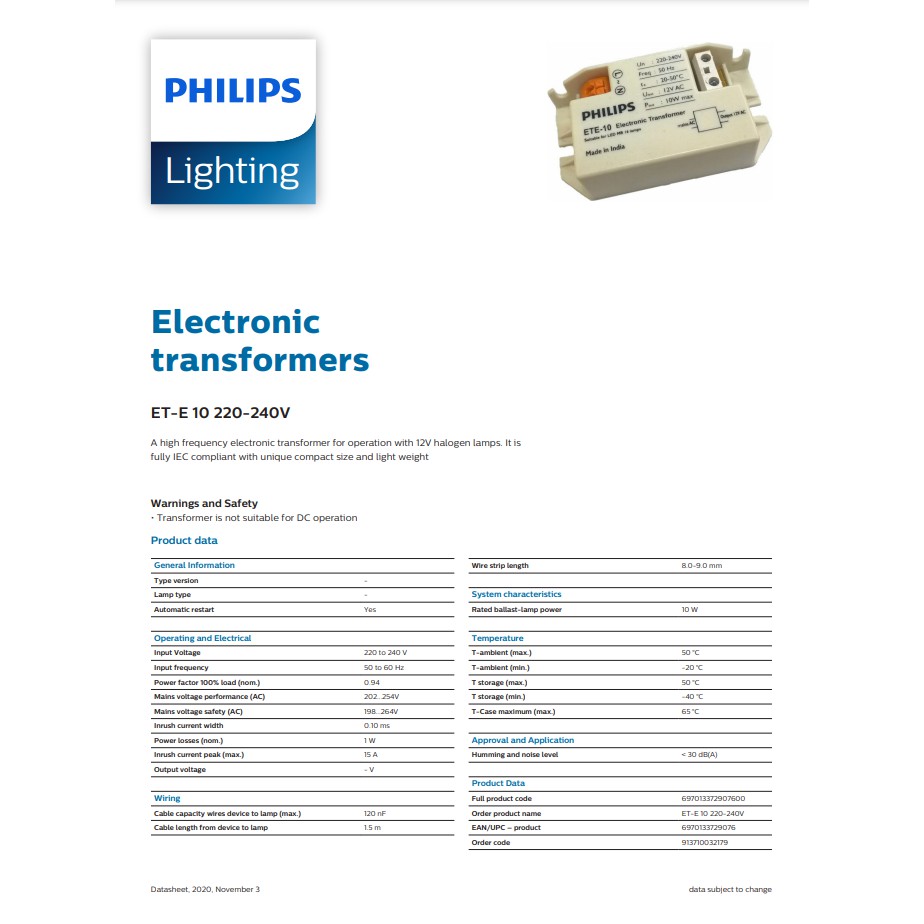 PHILIPS Electronic transformer ET-E 10 220-240V, high frequency electronic transformer (PSB)