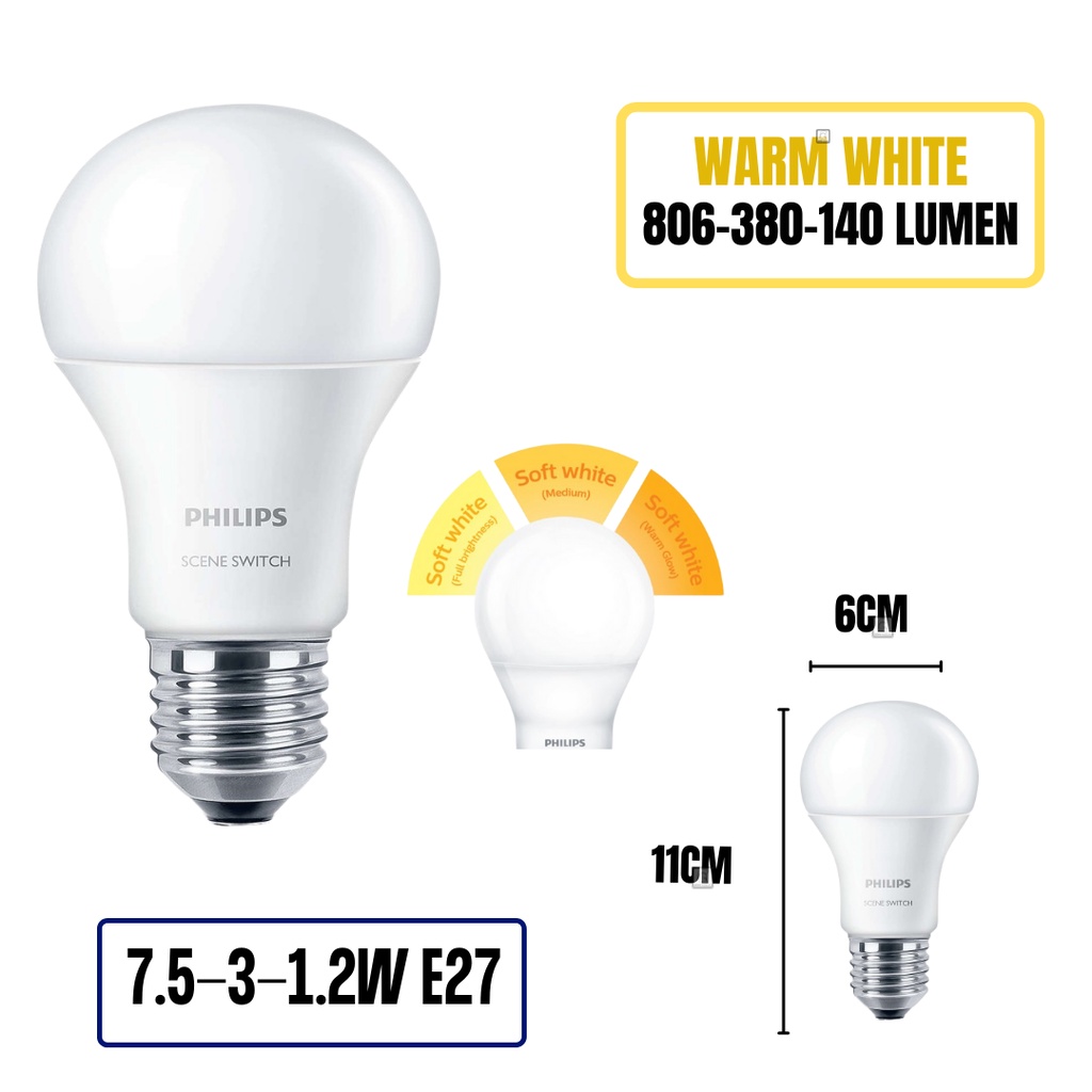 PHILIPS SceneSwitch E27 LED Bulb 2 / 3 Tone Step Dimming Light Bulb