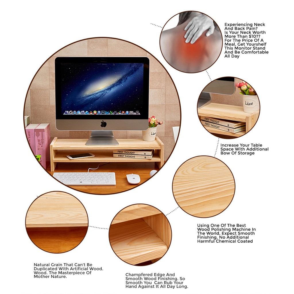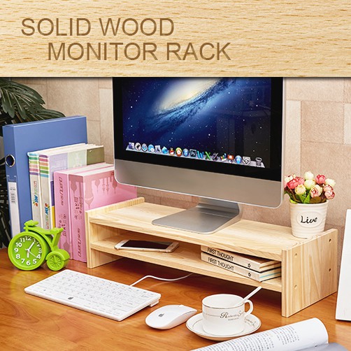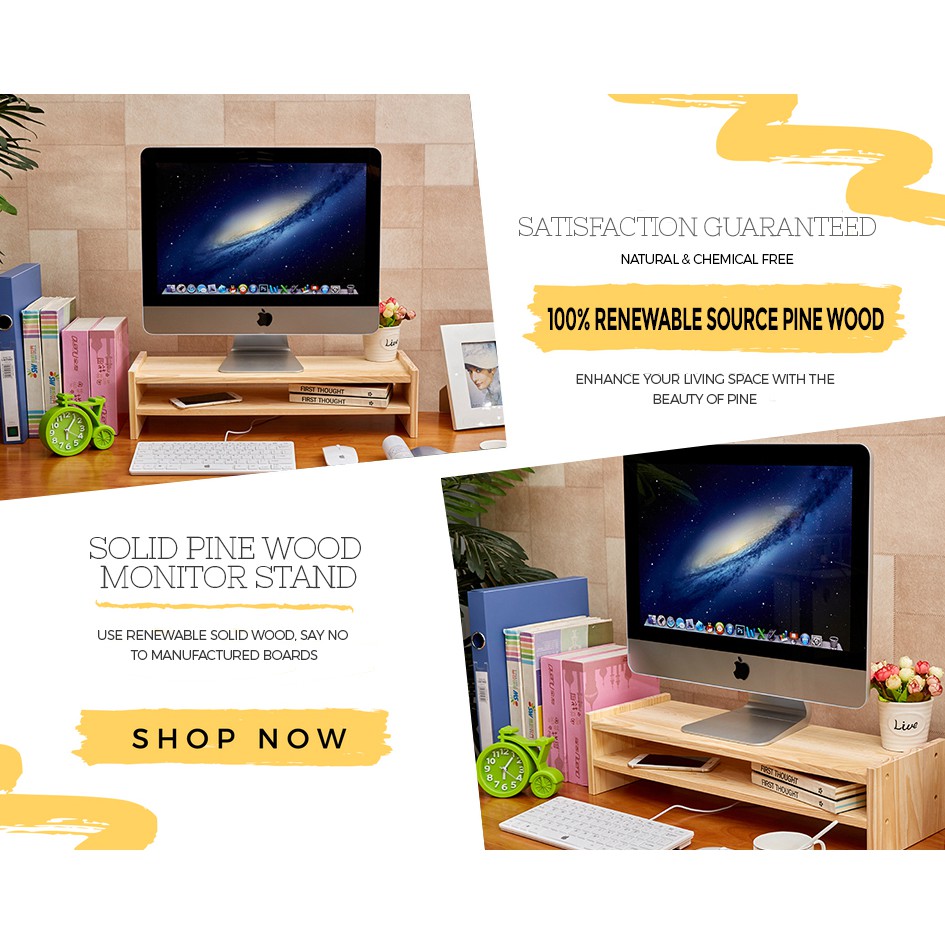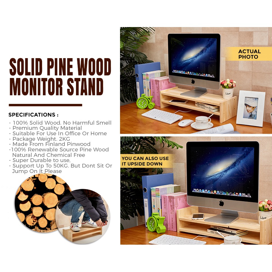 PINE WOOD MONITOR STAND 100% SOLID WOODEN RACK OFFICE TABLE DESK ORGANISER COMPUTER