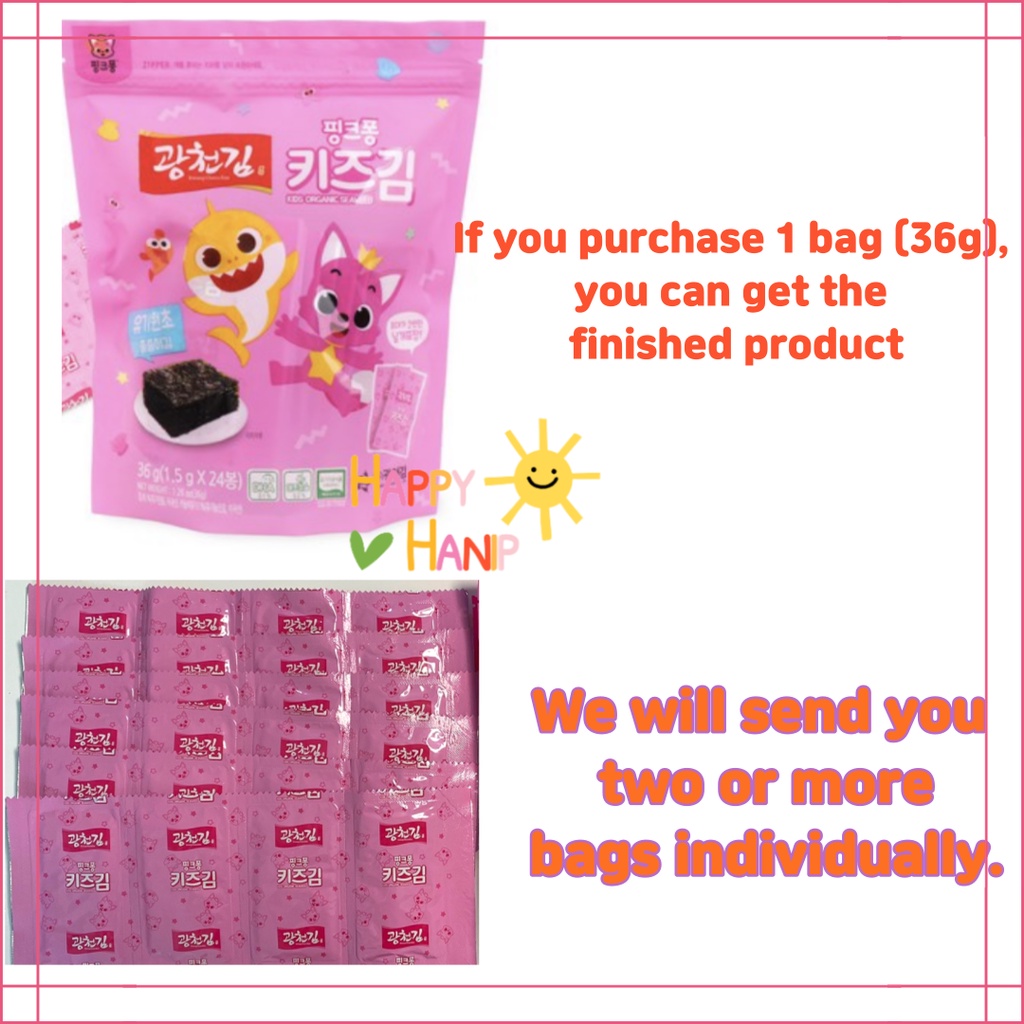 PINKFONG KWANGCHEON SEAWEED Pinkfong Kids Organic Seasoned Seaweed, Low-Sodium, Korean Food BABY SHARK SEAWEED