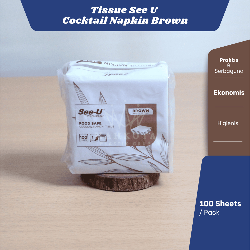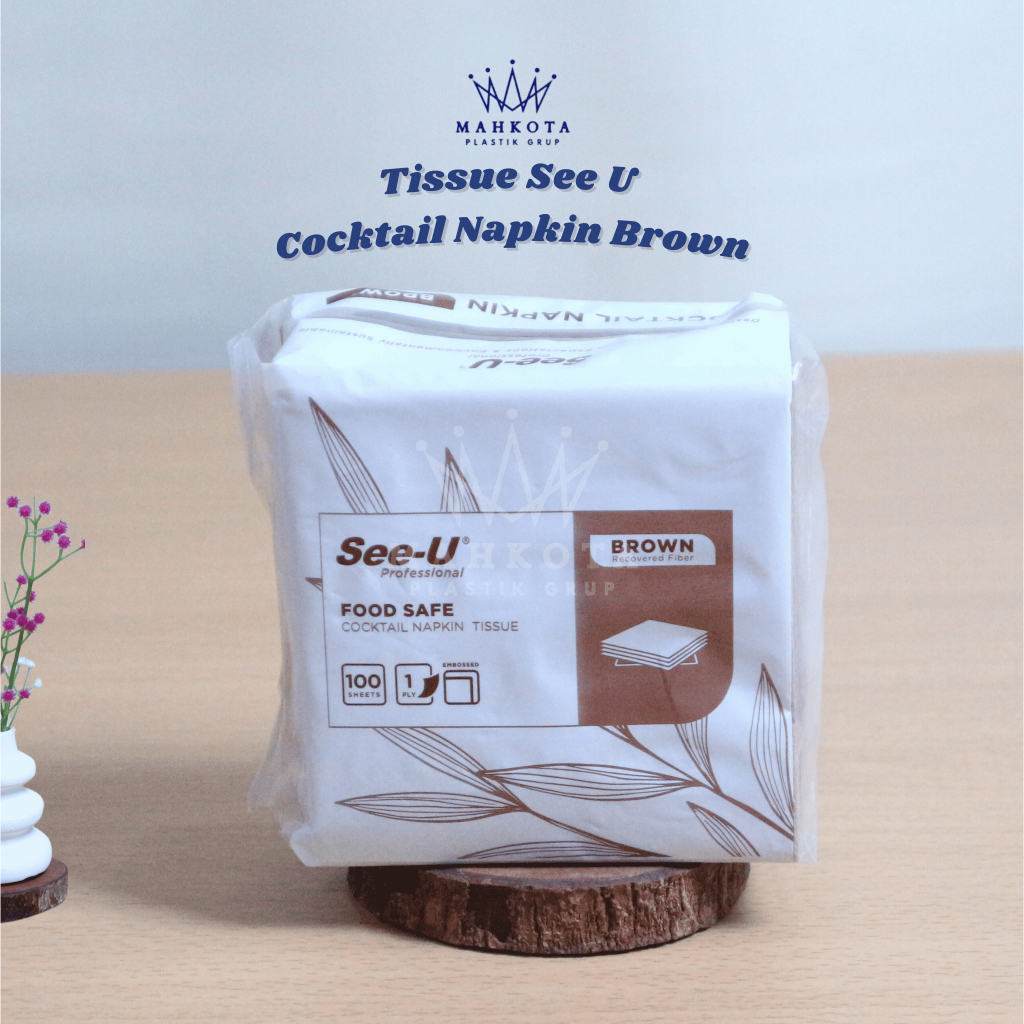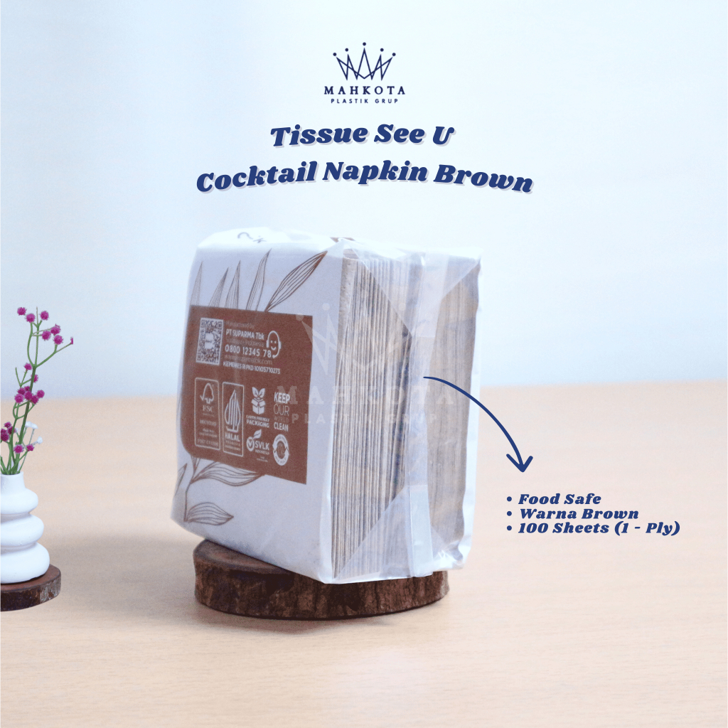 PLASTIC CROWN l TISSUE PLENTY NAPKIN COCKTAIL 100 SHEETS BROWN (PER PACK) - Retail NAPKIN TISSUE
