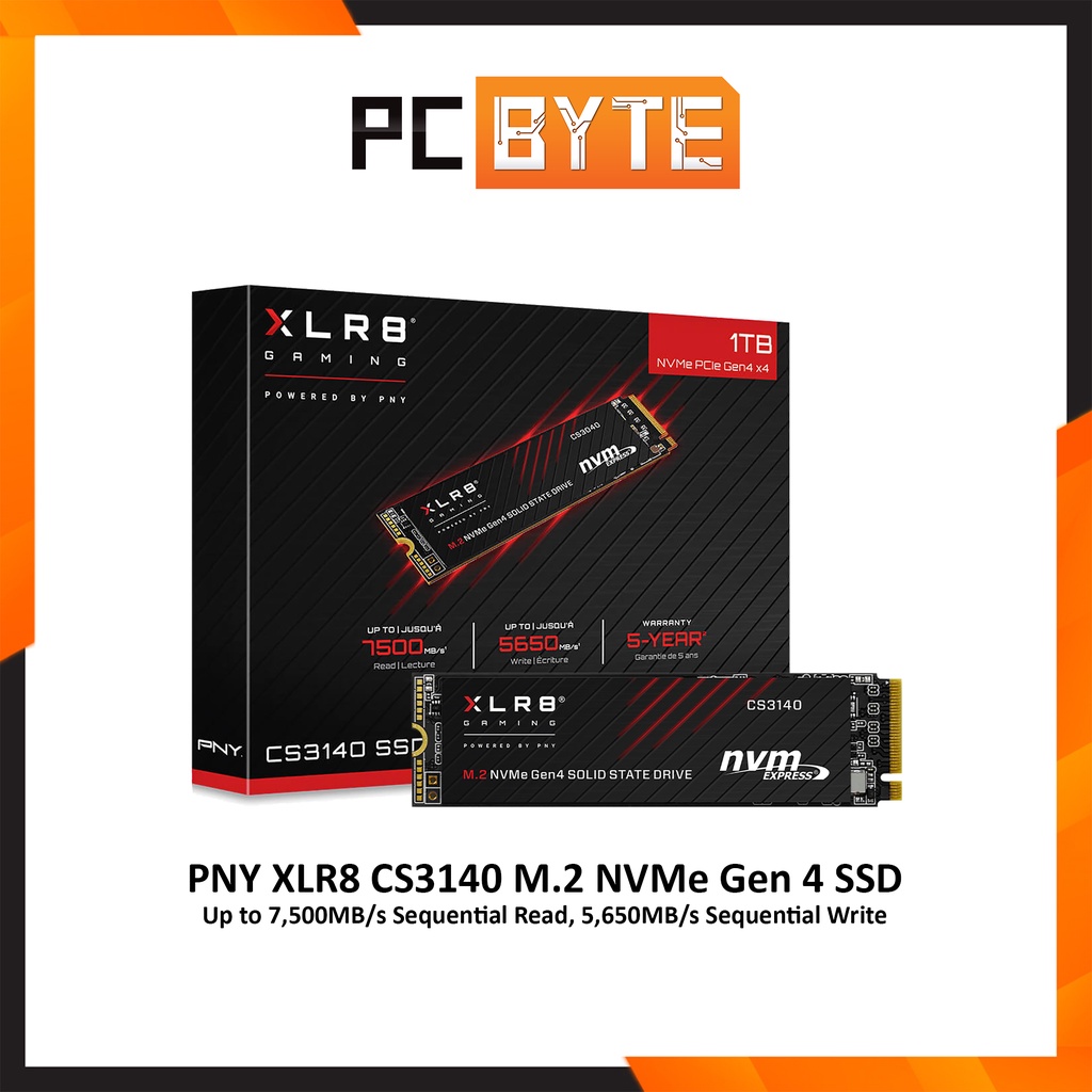 PNY XLR8 CS3140 Internal M.2 SSD (PCIe Gen4x4 NVMe 1.4 | Up to 7,500MB/s Max Sequential Read | 1TB/2TB)