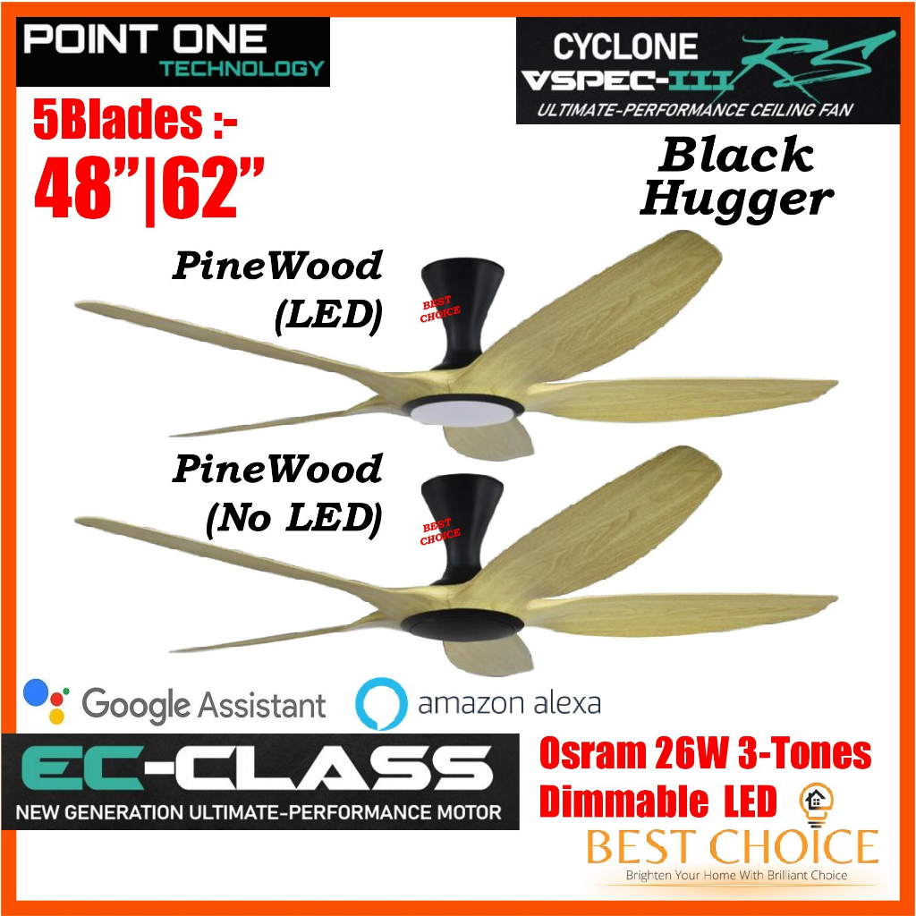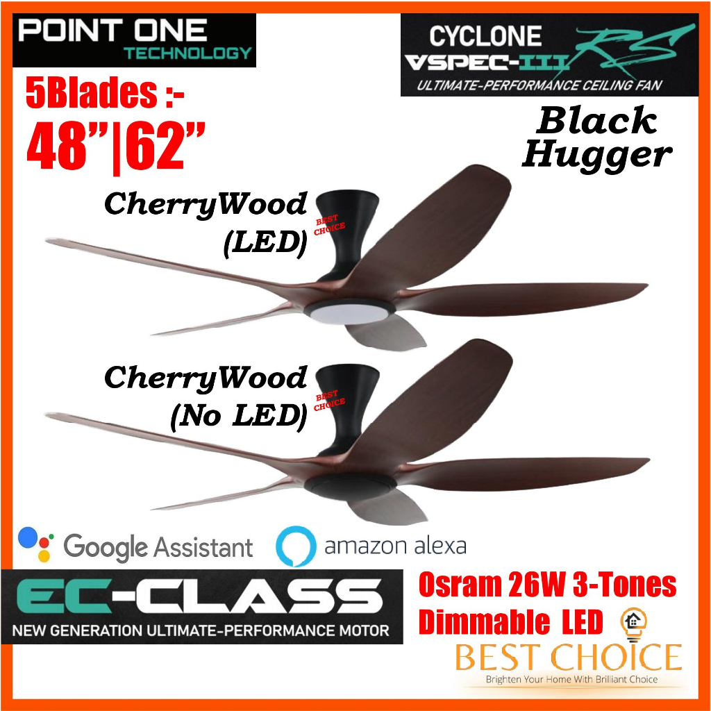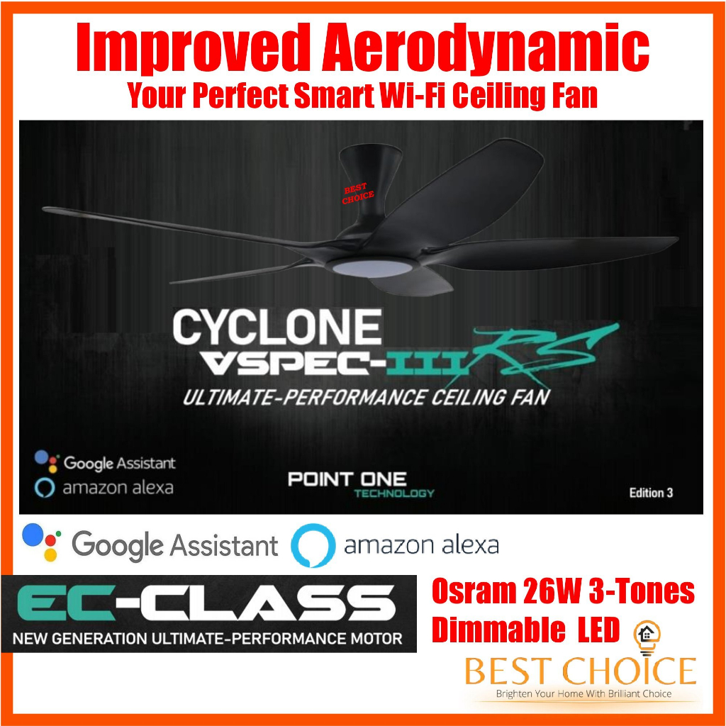 PO ECO CYCLONE VSPEC-III RS 5Blades Black Body SMART WIFI EC Motor Ceiling FAN 48/62in Dimmable 3-Tones LED Light