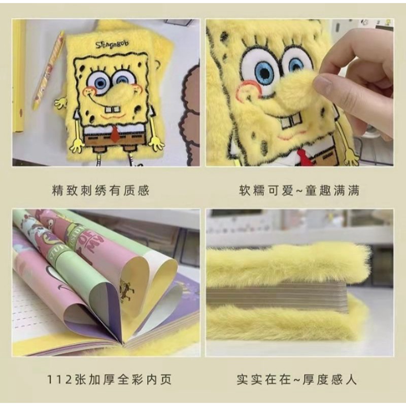 PO Spongebob Square Pants Flurry Fur Note Book Spong Bob Notebook Stationary