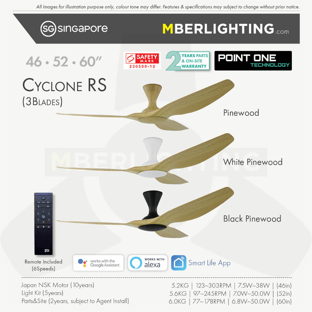 POINT ONE Cyclone RS 46/52/60" (No Light) VSPEC IV Smart Wi-Fi Ceiling Fan With Remote