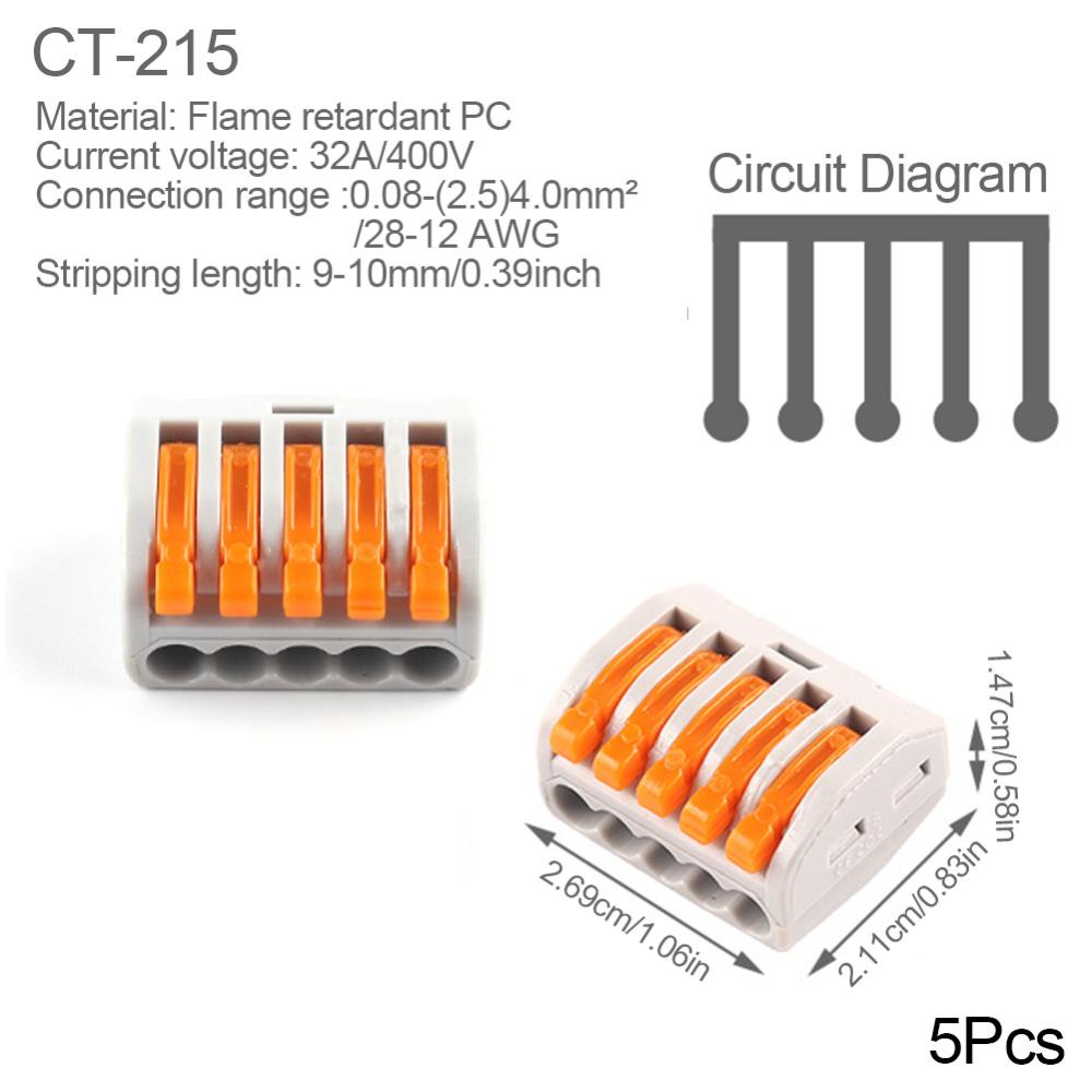 POKERFACE 5Pcs Universal Compact Wire Connector Splitter Quick Electrical Cable Splice Terminal Block Small Wiring Connectors C3U5