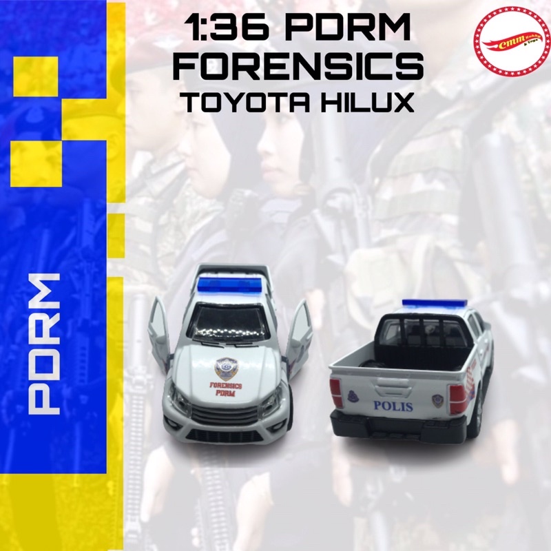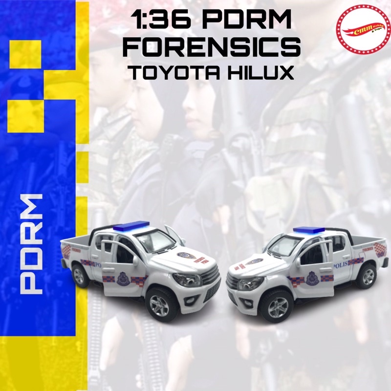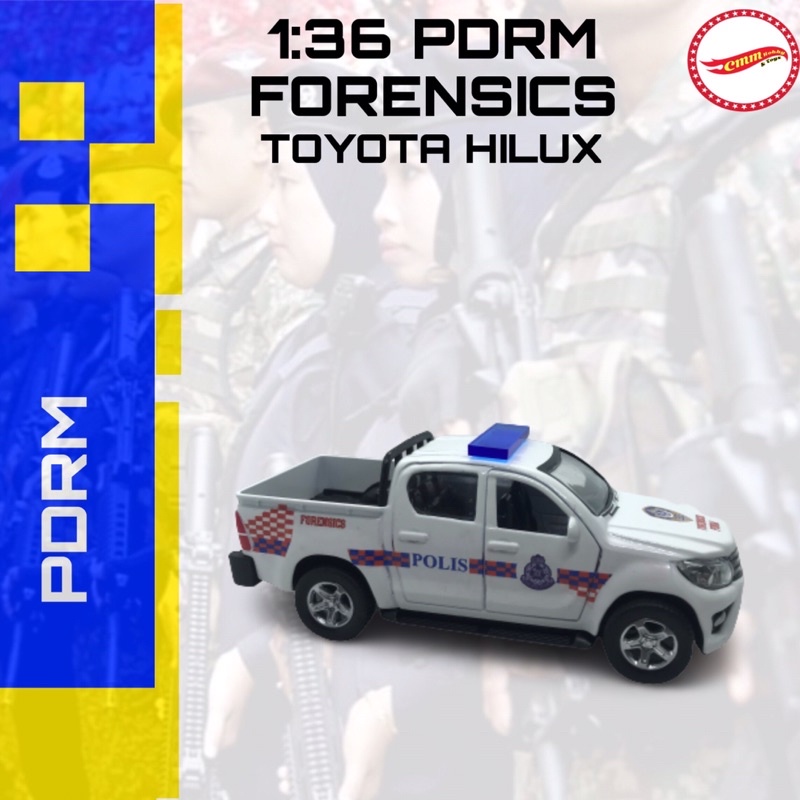 POLIS FORENSIK HILUX: 1:36 PDRM Forensics Hilux Diecast kereta polis diecast polis diecast custom kereta polis