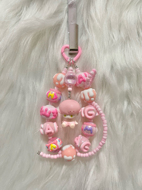 POP MART Pink Dimoo Single Strap Phone Bag Strap Simple Dainty Clay Hand painted Beads popmart