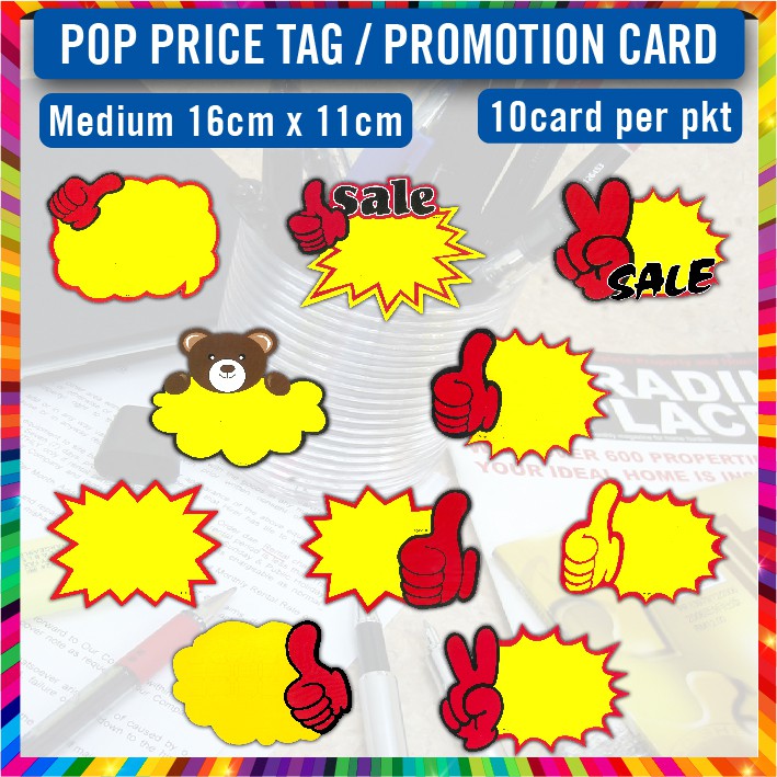 POP Price Tag Cards / Thumbs Up Pop Price Tags / Jualan Tag Label - POP-222 (Medium) 16CM X 11CM (10pcs)