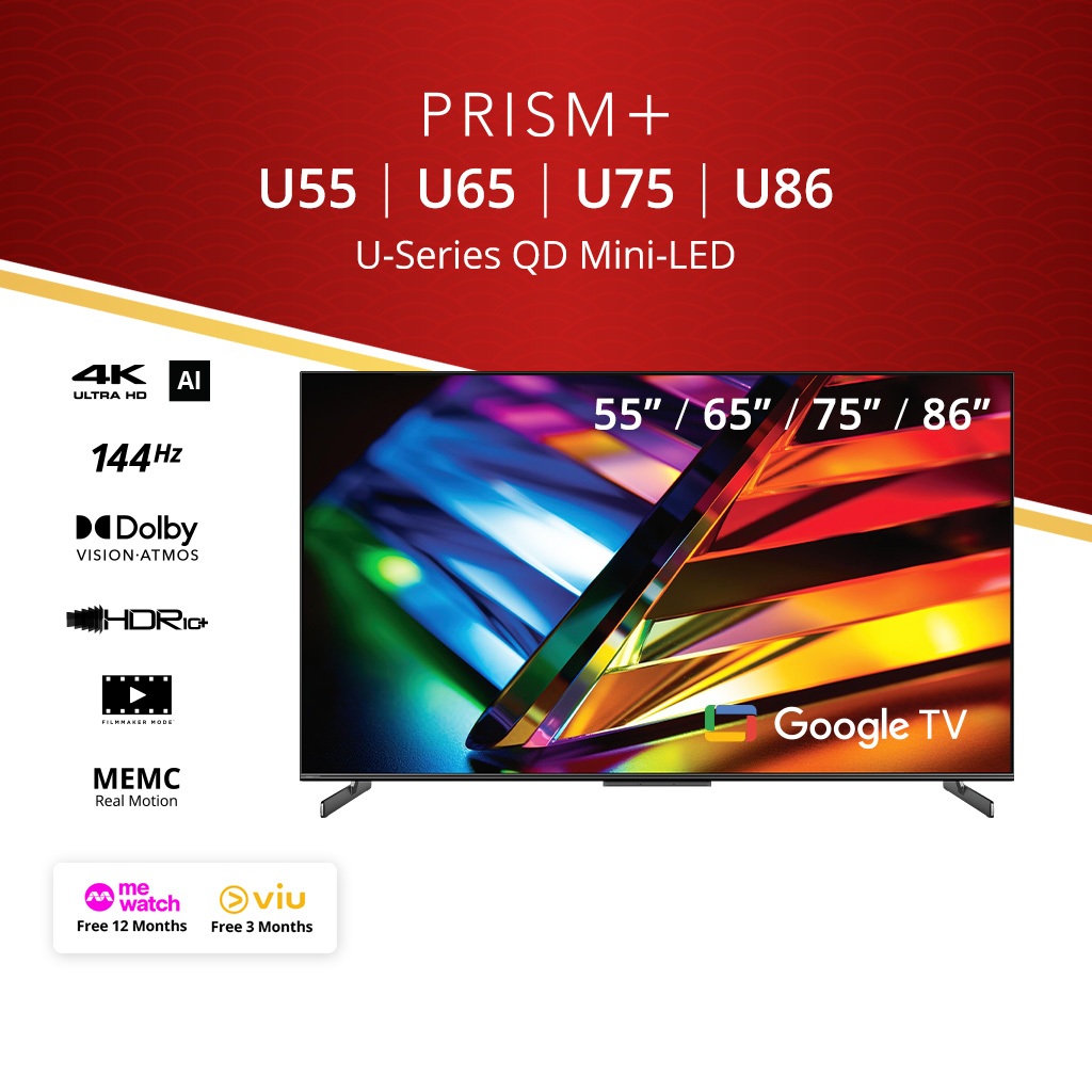 PRISM+ U-Series 55 / 65 / 75 / 86 inch QD Mini-LED | Google TV |4K UHD Quantum Dot Mini-LED panel