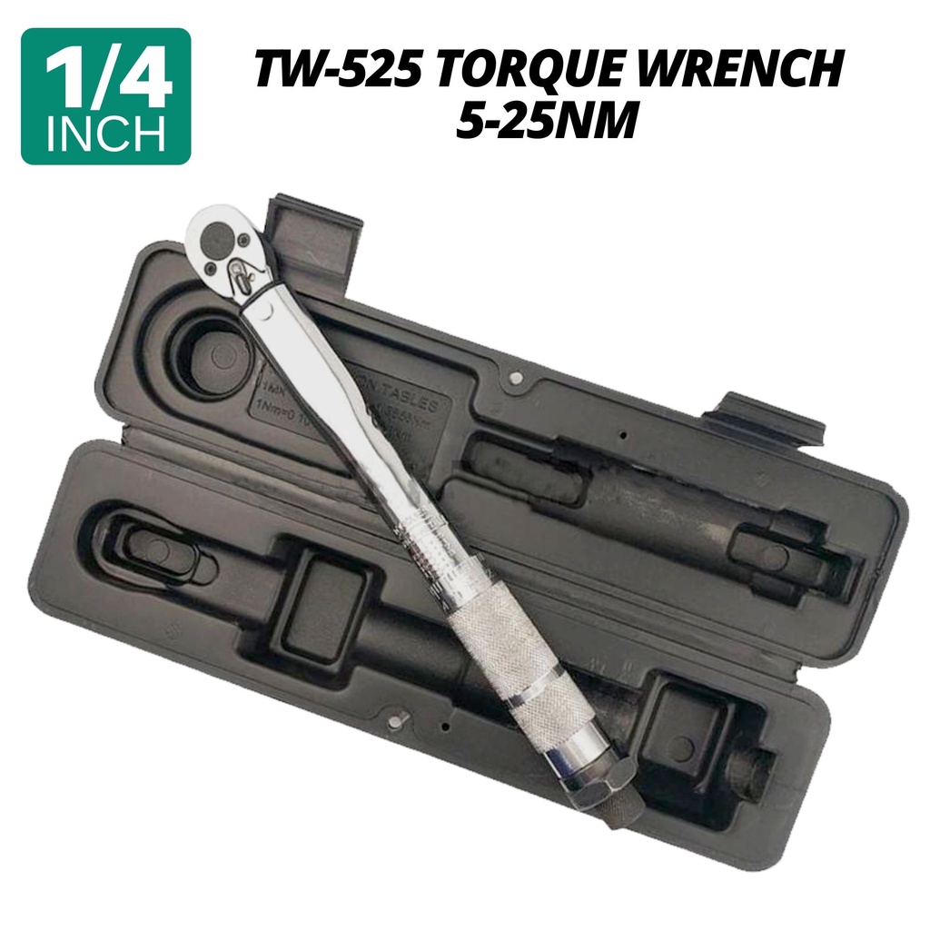 PRODIY TW-525 1/4" 5-25NM 1/4 Inch Drive Torque Wrench Ratchet Wrench Hand Tool Tork Wrench Toque ( Silver Blue Black )