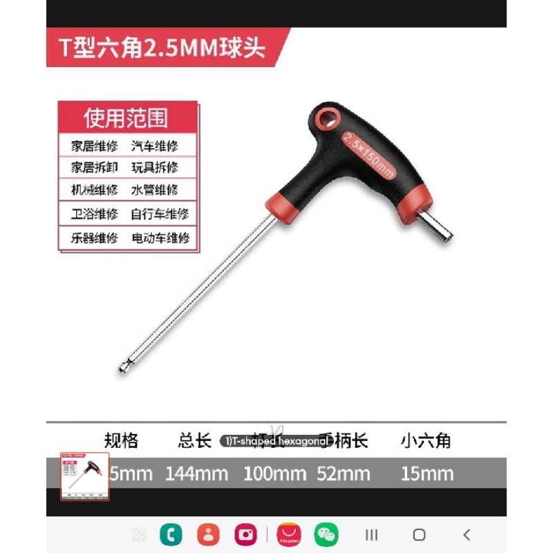 PROFESSIONAL T Handle Cr-V Hex Allen Key with Ball Point Long Arm High Hardness Singapore Local Stock 4mm 5mm 6mm 8 10mm