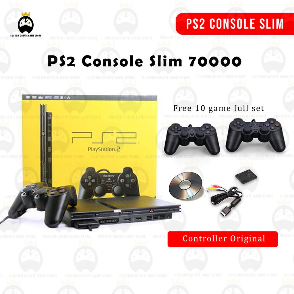 PS2 CONSOLE SLIM MODEL 70000 REFURBISH SET FULL SET *PS2