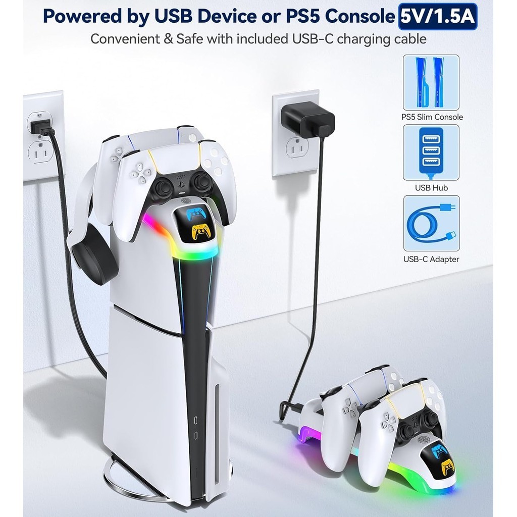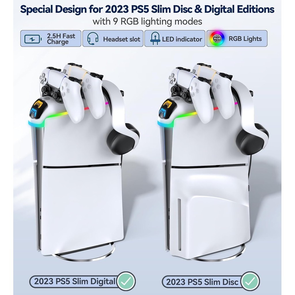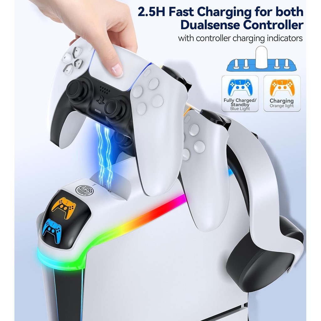 PS5 Controller Charger Station with RGB Light, PS5 Controller Charger Compatible with 2023 PS5 Slim Digital & Disc