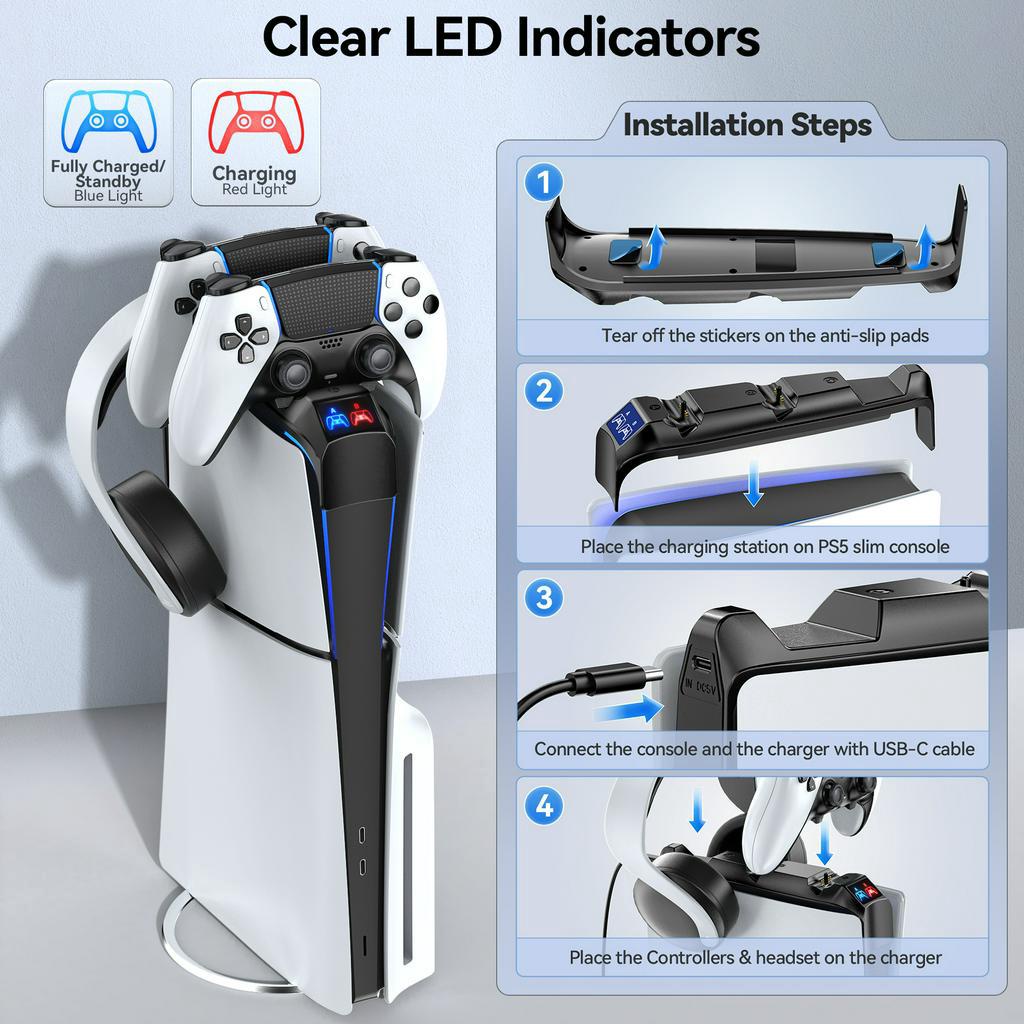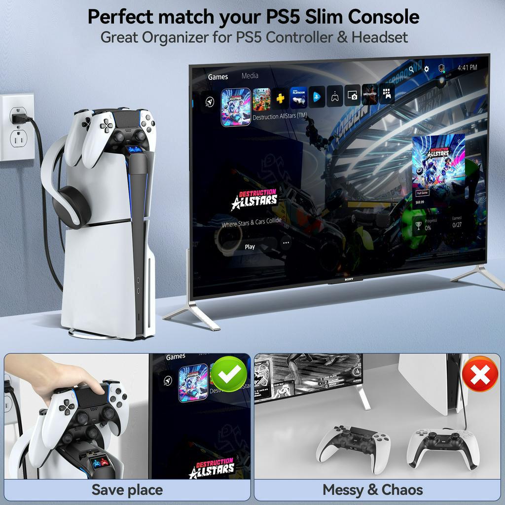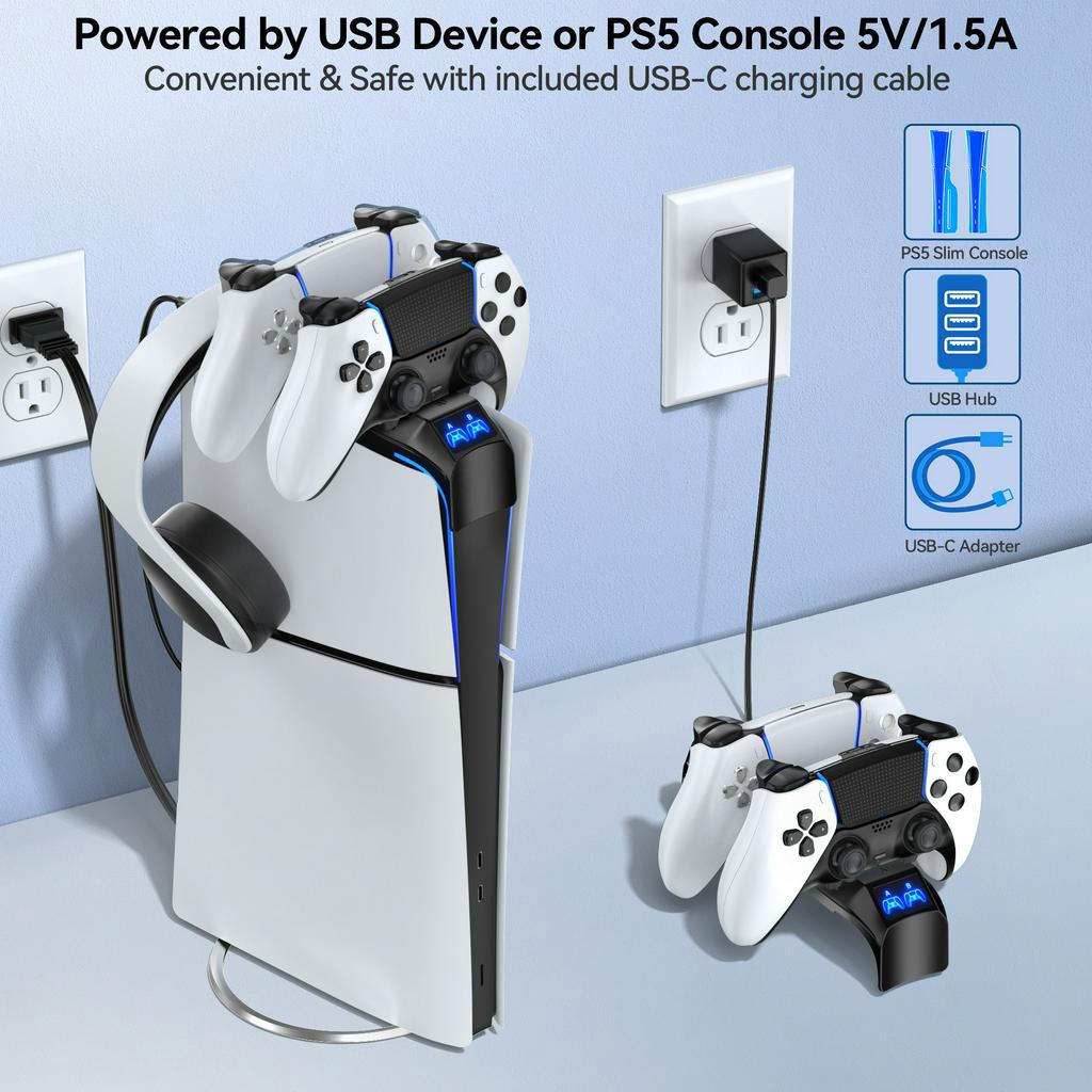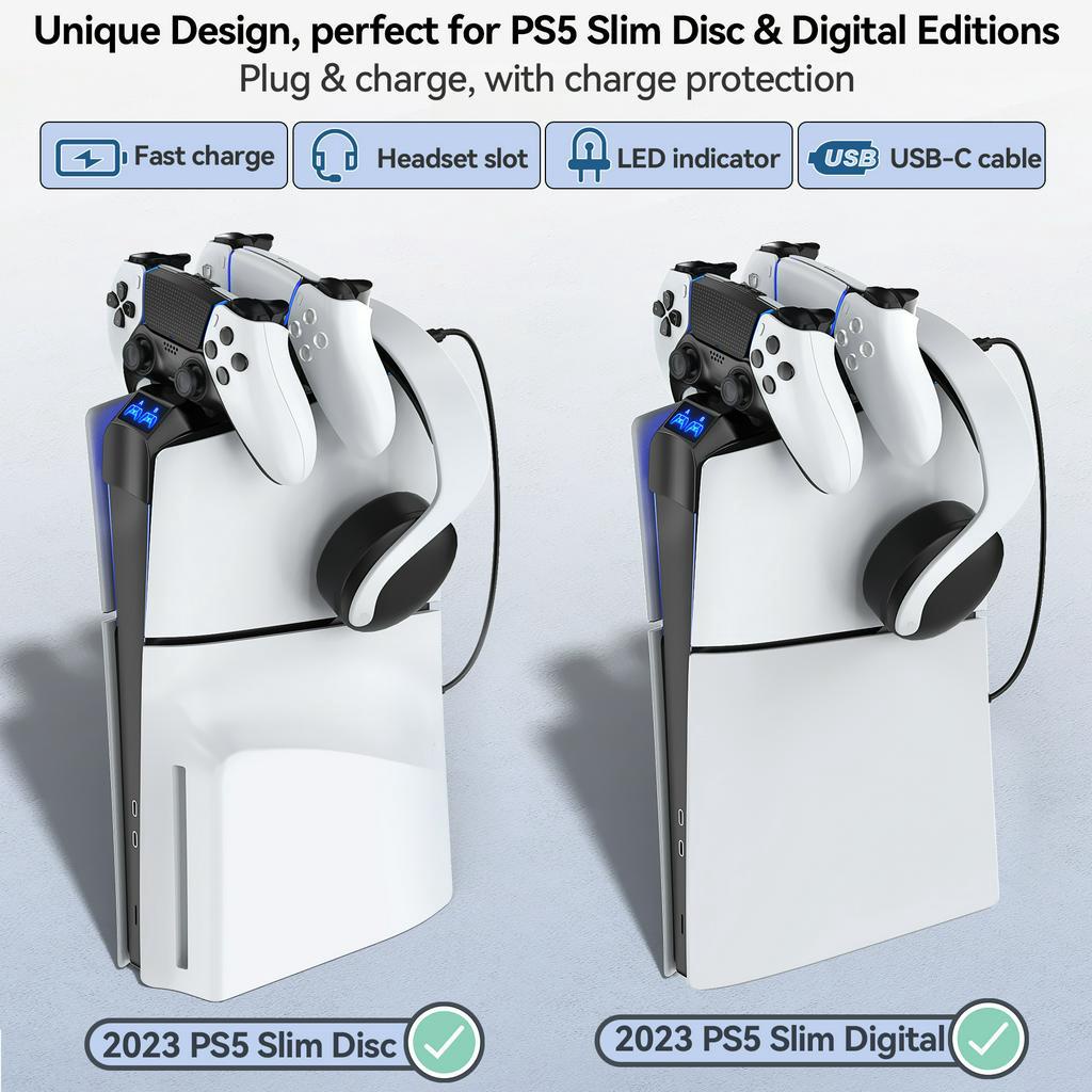 PS5 Controller Charger for PS5 Slim Console, Top Charger Station