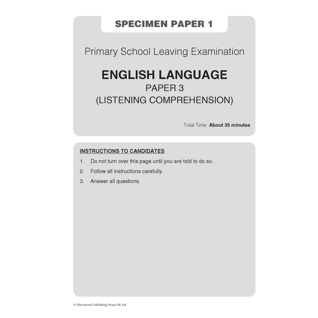 PSLE English Specimen Papers: Paper 3 Listening and Paper 4 Oral