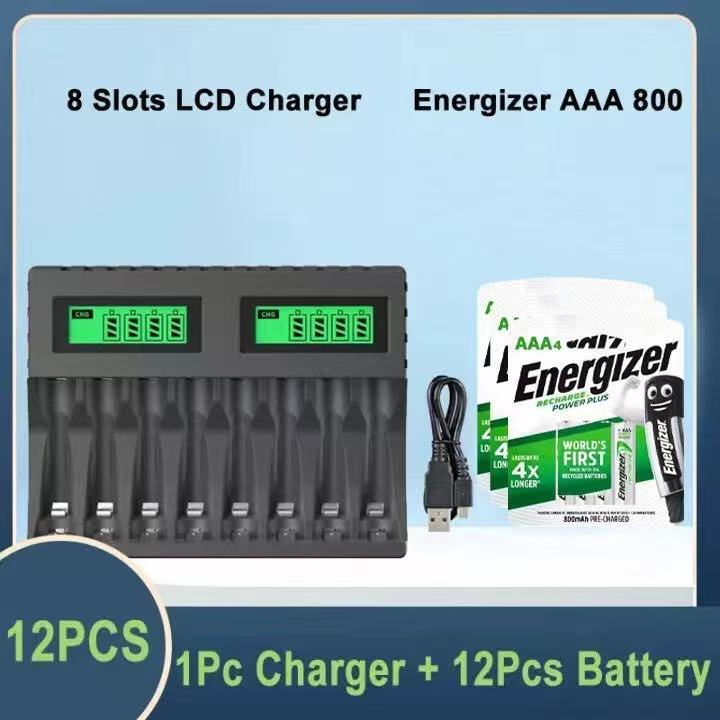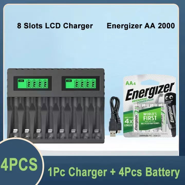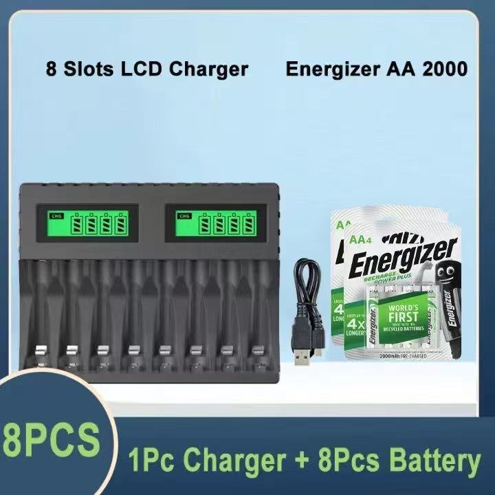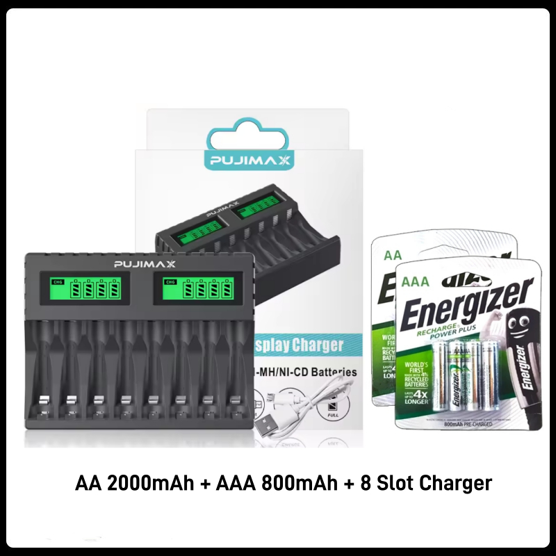 PUJIMAX 8-slot Battery Charger Suitable AAA/AA Rechargeable Battery Short Circuit Protection LED Display Ni-MH/Ni-Cd USB Charger