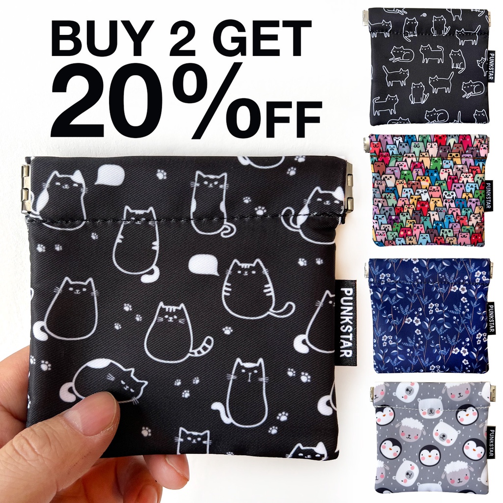 PUNKSTAR Pinch Pouch 11cm X 11cm Coin Purse Holder Credit Card Case Squeeze Wallet For Men & Women