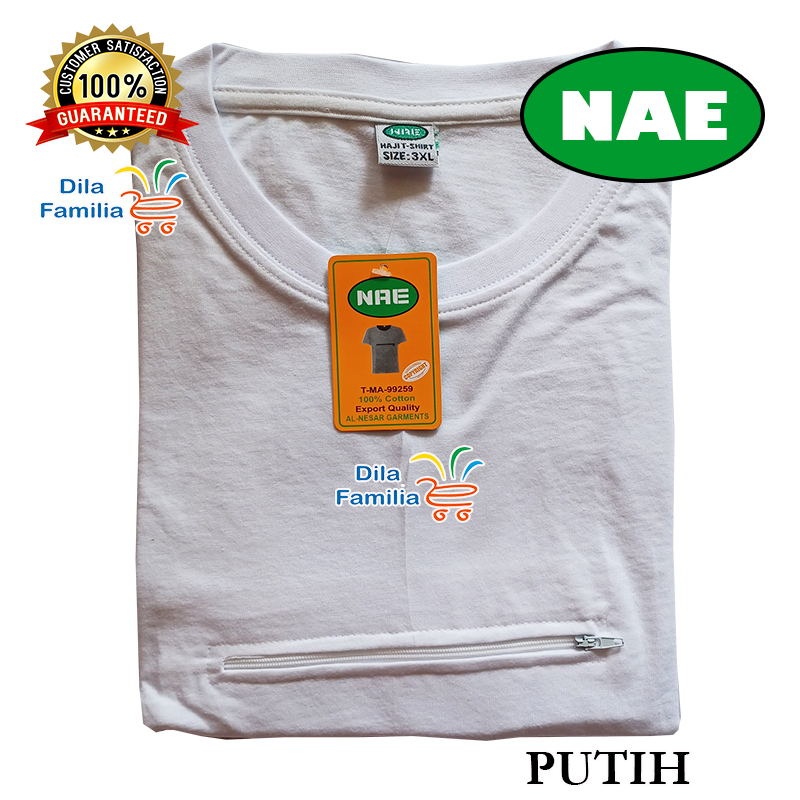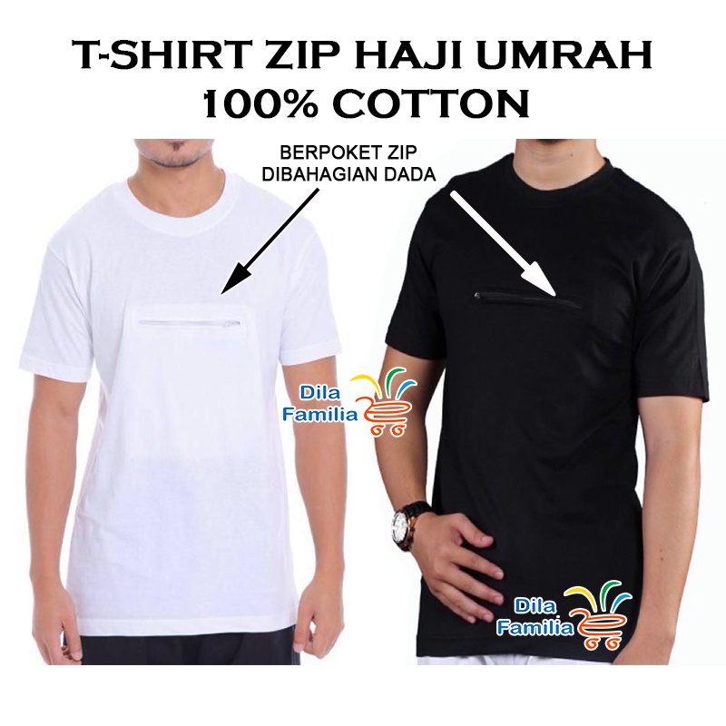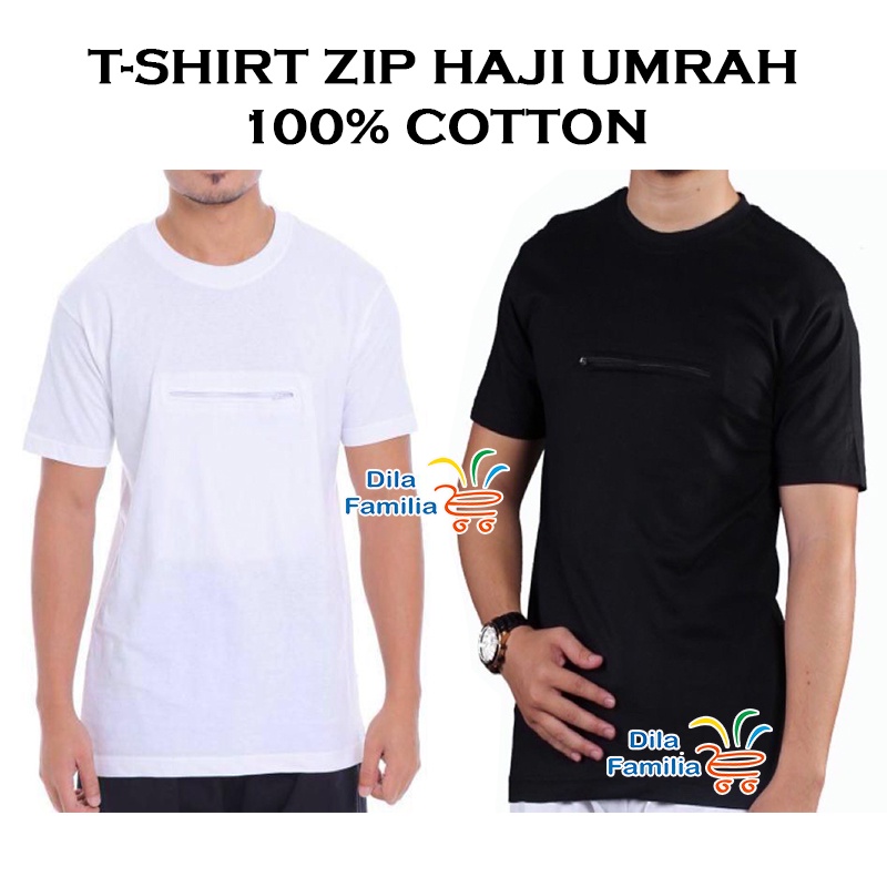 T-Shirt Haji Dan Umrah Berzip Viral Round Neck Baju Pagoda Zip & Pocket Cotton Putih Hitam Lelaki Wanita Al Hera Nae
