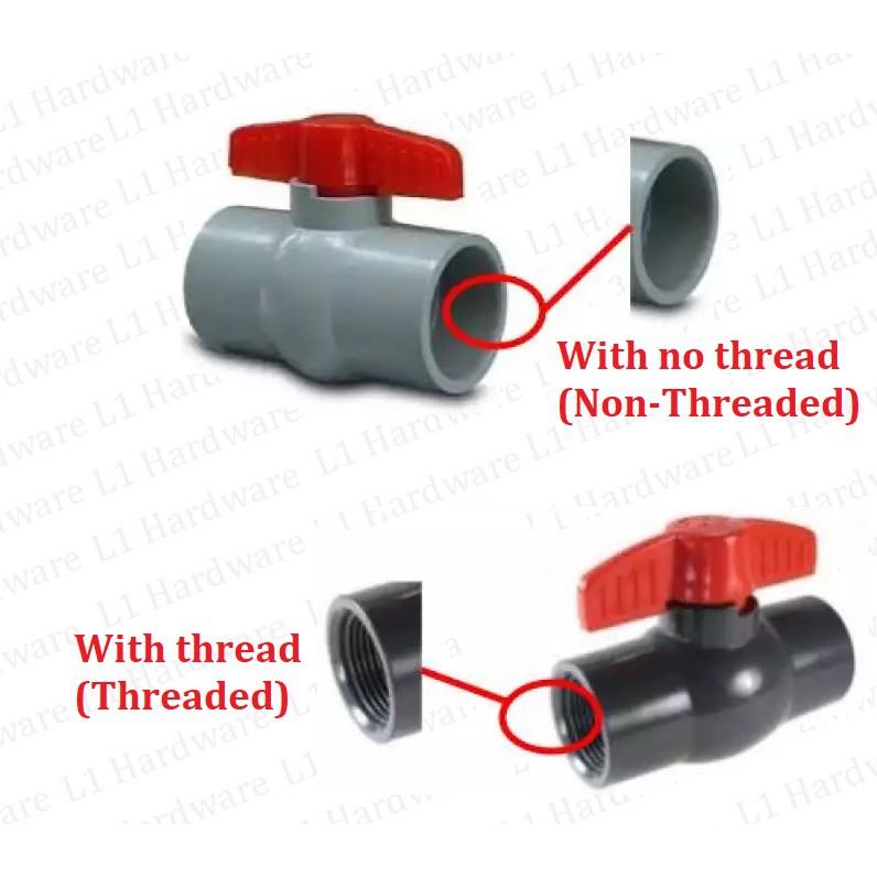 PVC Ball Valve Compact Socket Stop Cock PVC Pipe Fitting PVC Connector Paip THREADED NON-THREADED Thread End Socket End