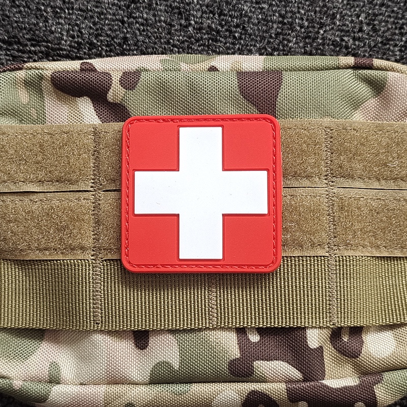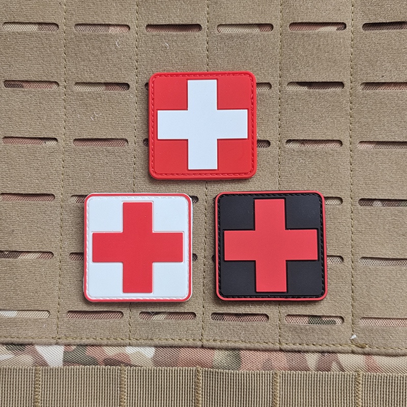PVC Cross Badge Medical Emergency Patch Tactical Rescue Battlefield Staff MEDIC Rubber Material 3D Logo Velcro Back Lining Hook Buckle Soft Outdoor Bag Accessories