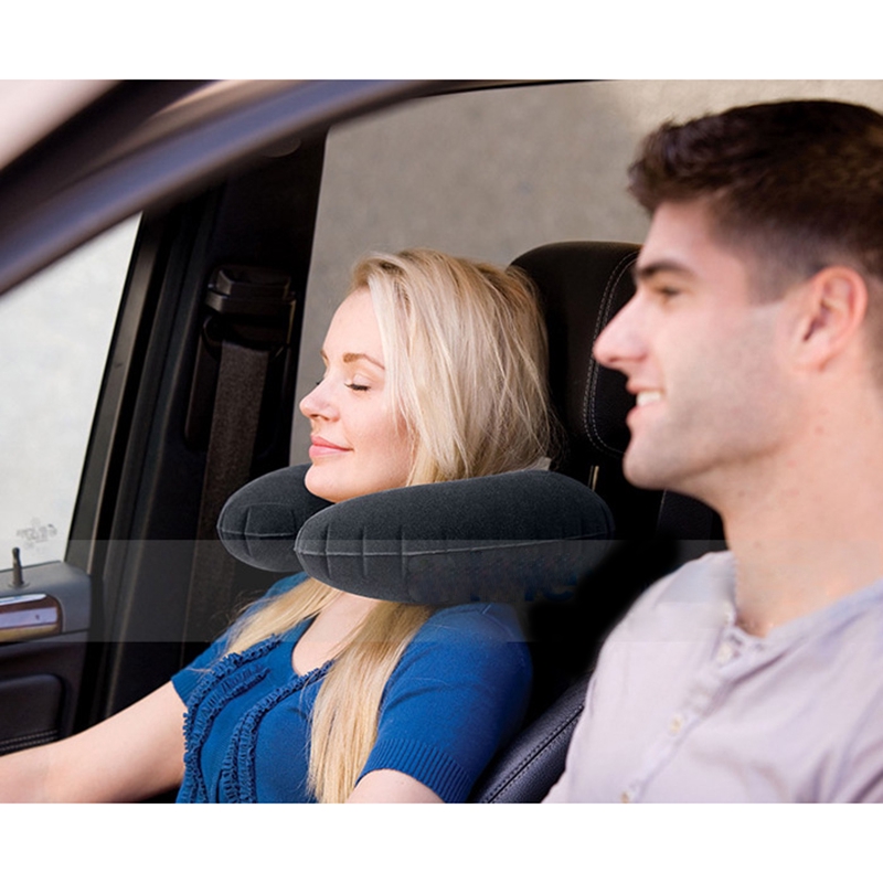 PVC Flocking Outdoor Portable Pillow Travel Neck U-shaped Inflatable Pillow
