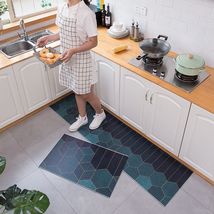 PVC Kitchen Floor Mat Non-slip Waterproof Oil-proof Long Carpet Door Mat Anti-slip Kitchen Rug Entrance Doormat