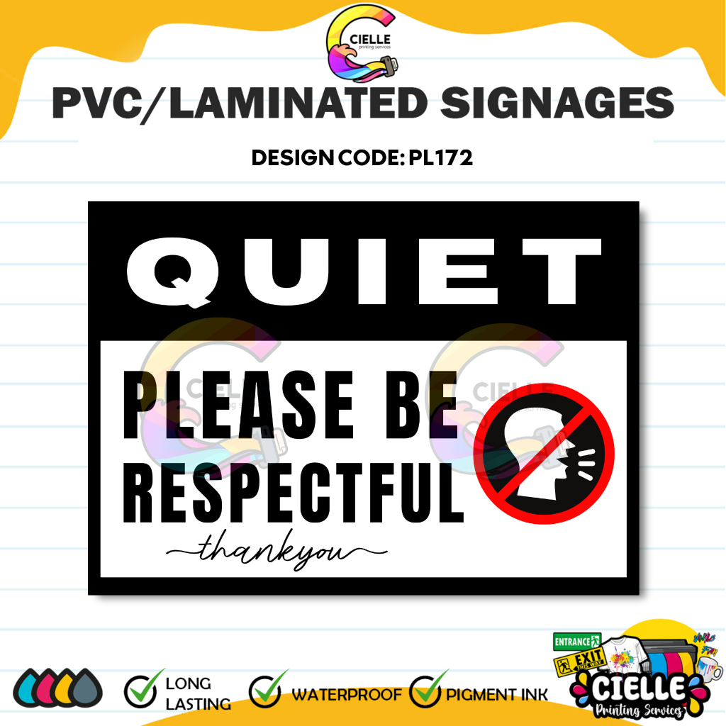 PVC/LAMINATED/STICKER SIGNAGES (PL171&PL172) - QUIET/KEEP SILENT/ PLEASE BE RESPECTFUL SIGNAGE