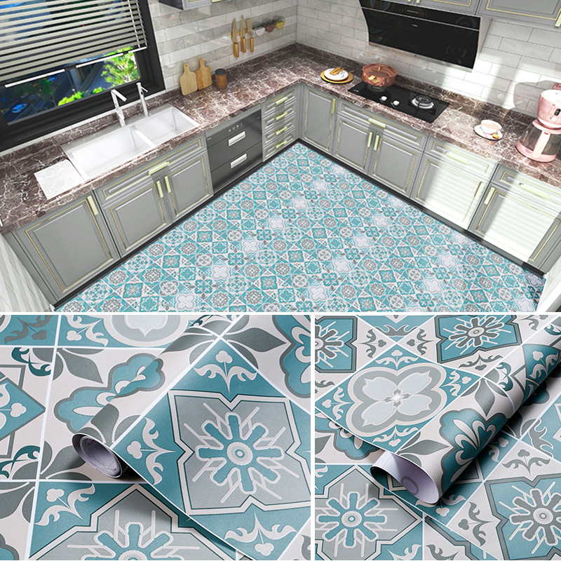 PVC Thickened Bathroom Kitchen Waterproof Floor Stickers Wear-resistant Non-slip Floor Stickers Self-adhesive Floor Renovation
