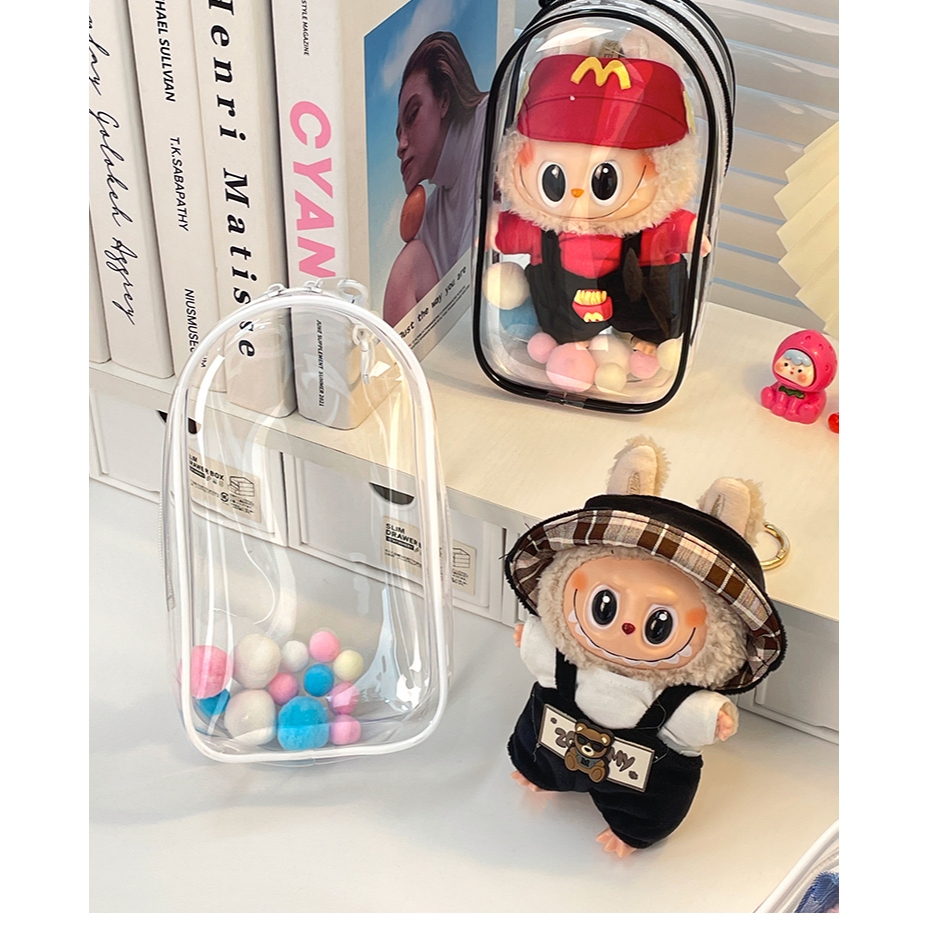 15/17cm Labubu Outdoor Transparent Protective Bag Labubu V3/V2/V1 PVC Dustproof Waterproof Cover Display Bag