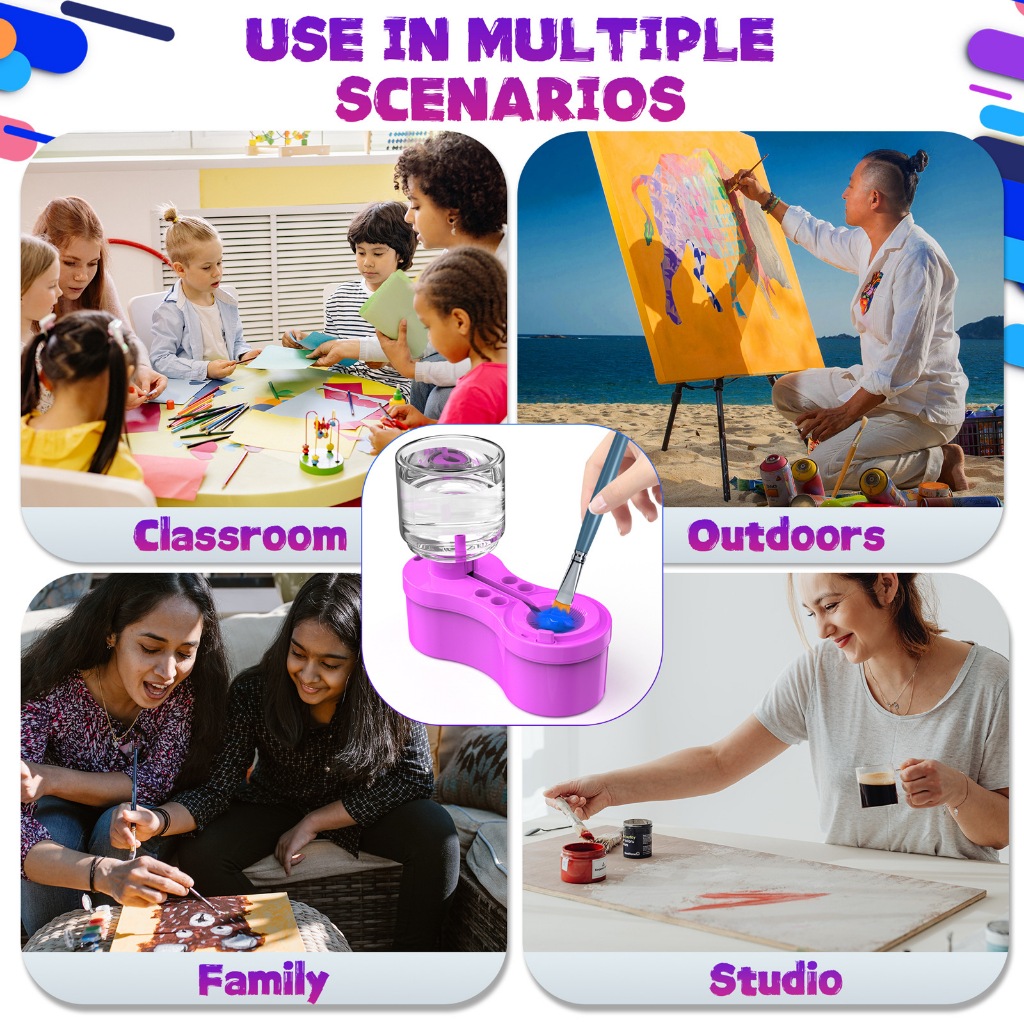 Paint brush cleaner, paint brush set rinser, with drain and brush holder, water circulation brush set cleaning rinse cup, suitable for acrylic, watercolor, water-based painting sup