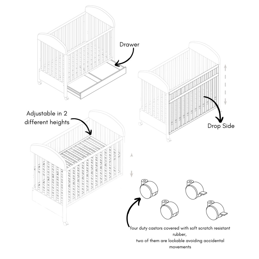 Pali Ciak Baby Cot (130 x 70cm) with Foam Mattress