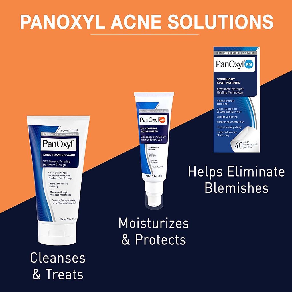 PanOxyl 10% Benzoyl peroxide Acne Foaming Wash/ Oil Control Moisturizer / Overnight Spot Patches