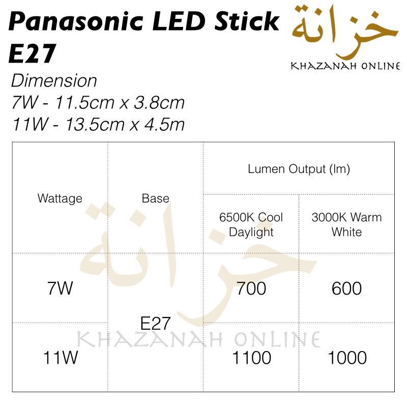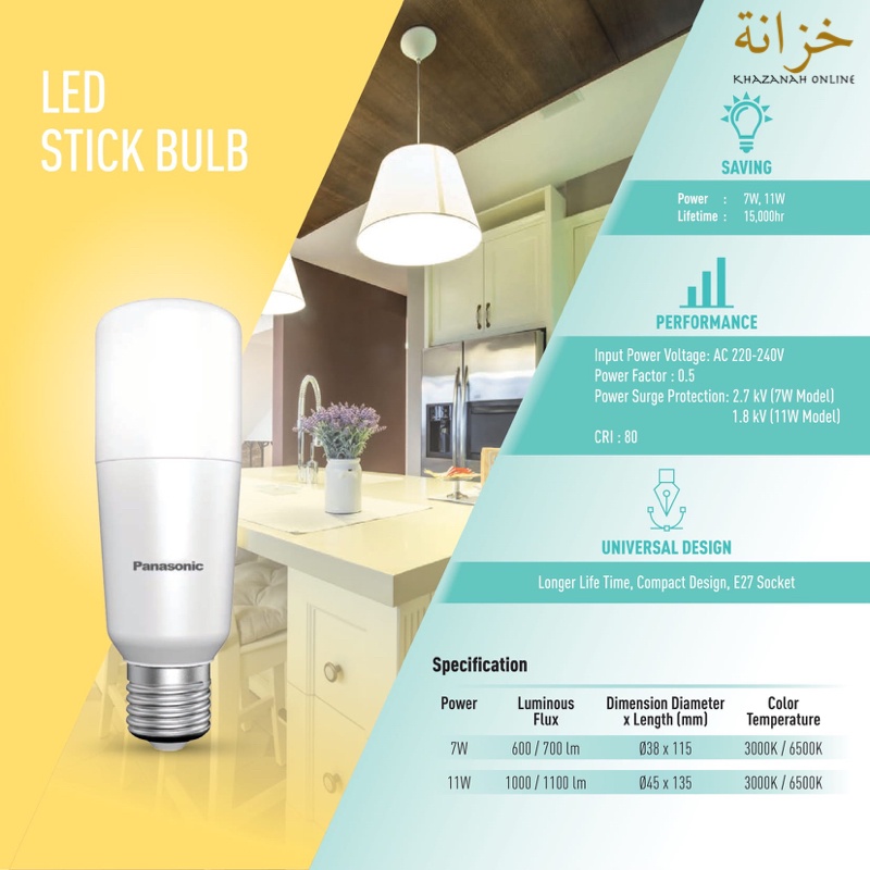 Panasonic LED Stick Bulb 7W 11W | E27 ( 6500K Cool Daylight or 3000K Warm White )