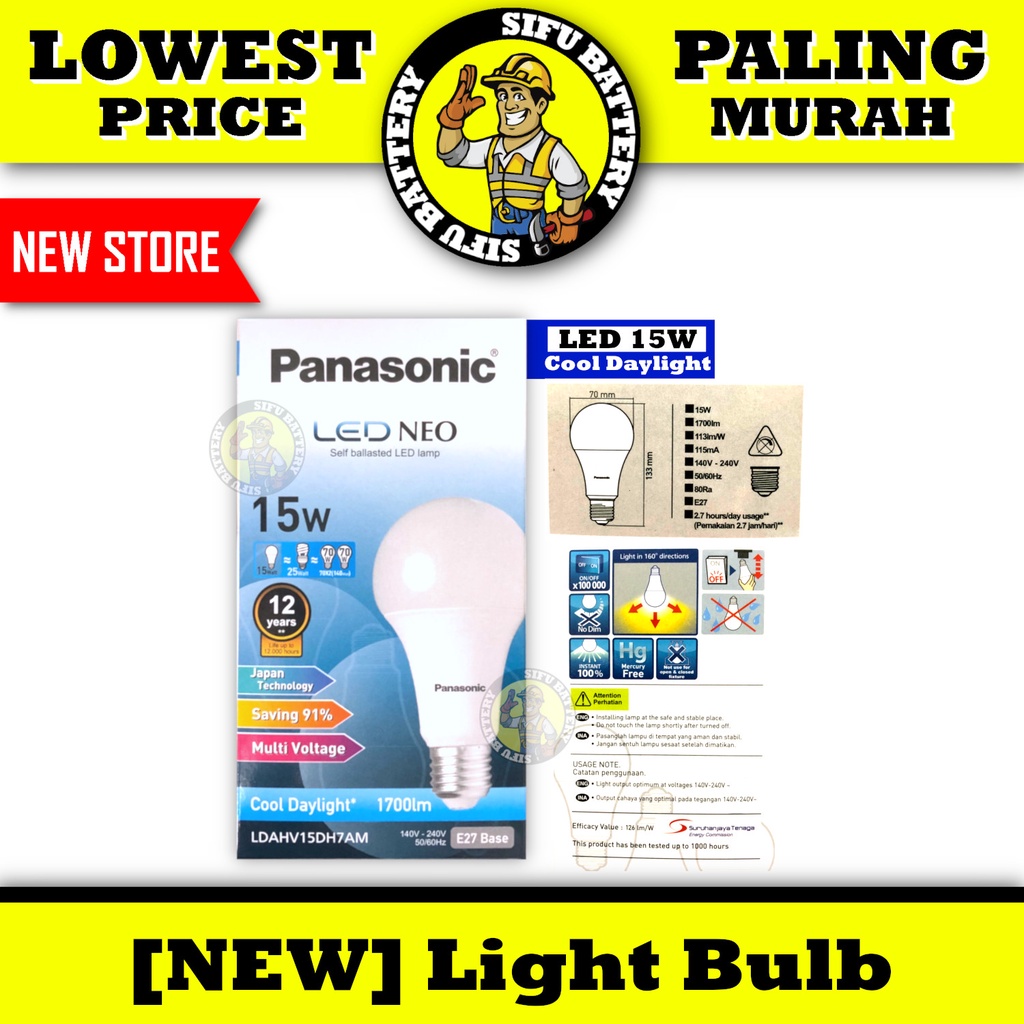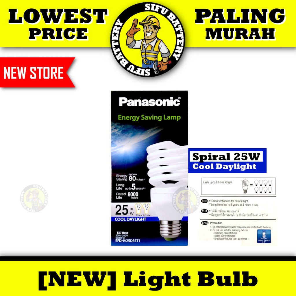 Panasonic Light Bulb LED / CFL 6500k Cool Daylight (White) 13W 15W 18W 25W 3U Spiral Energy Saving Light Bulb